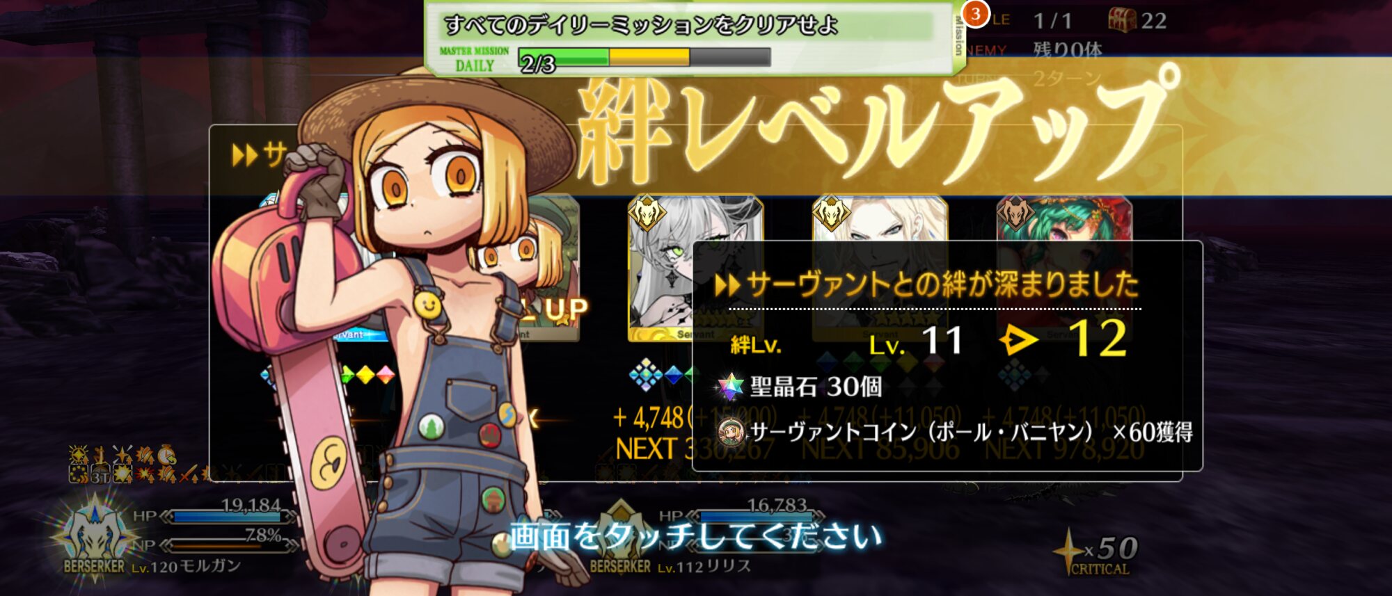 そのうち忘れそうだし所長とマシュを120にして…ほいから新モーションの人達確認して…