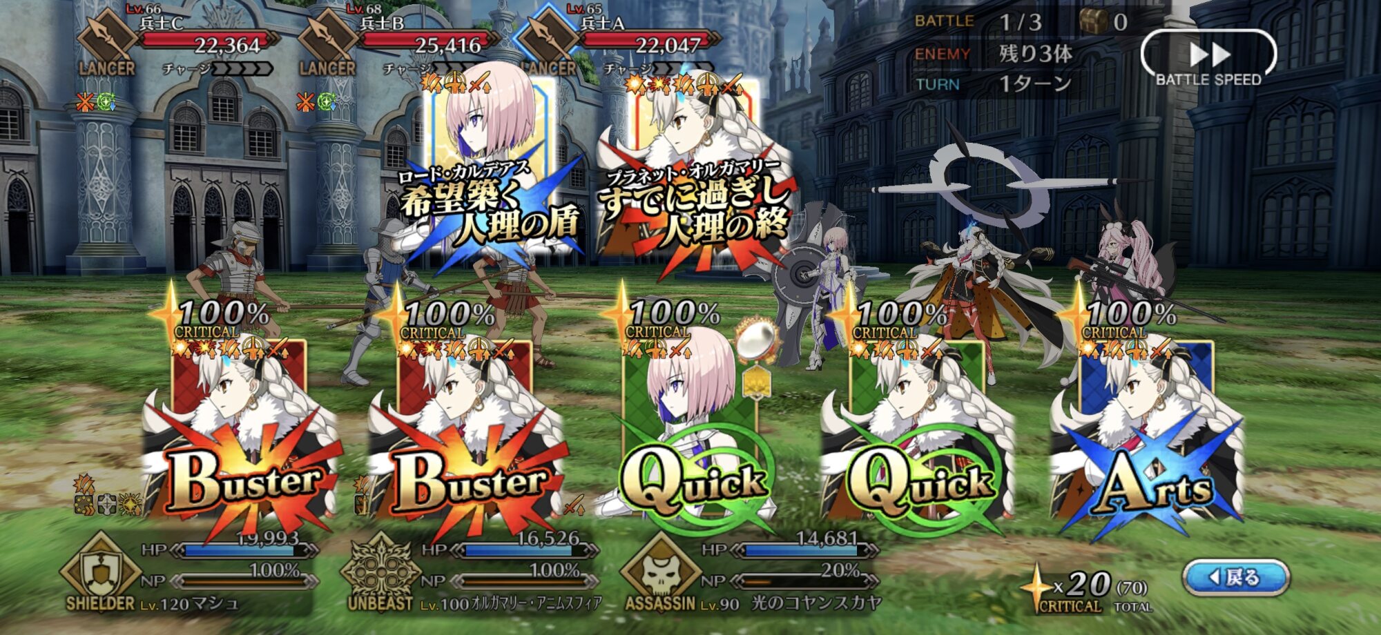宝具にHP回復か、スキルのどれかにスキルチャージ短縮…かな。>>859