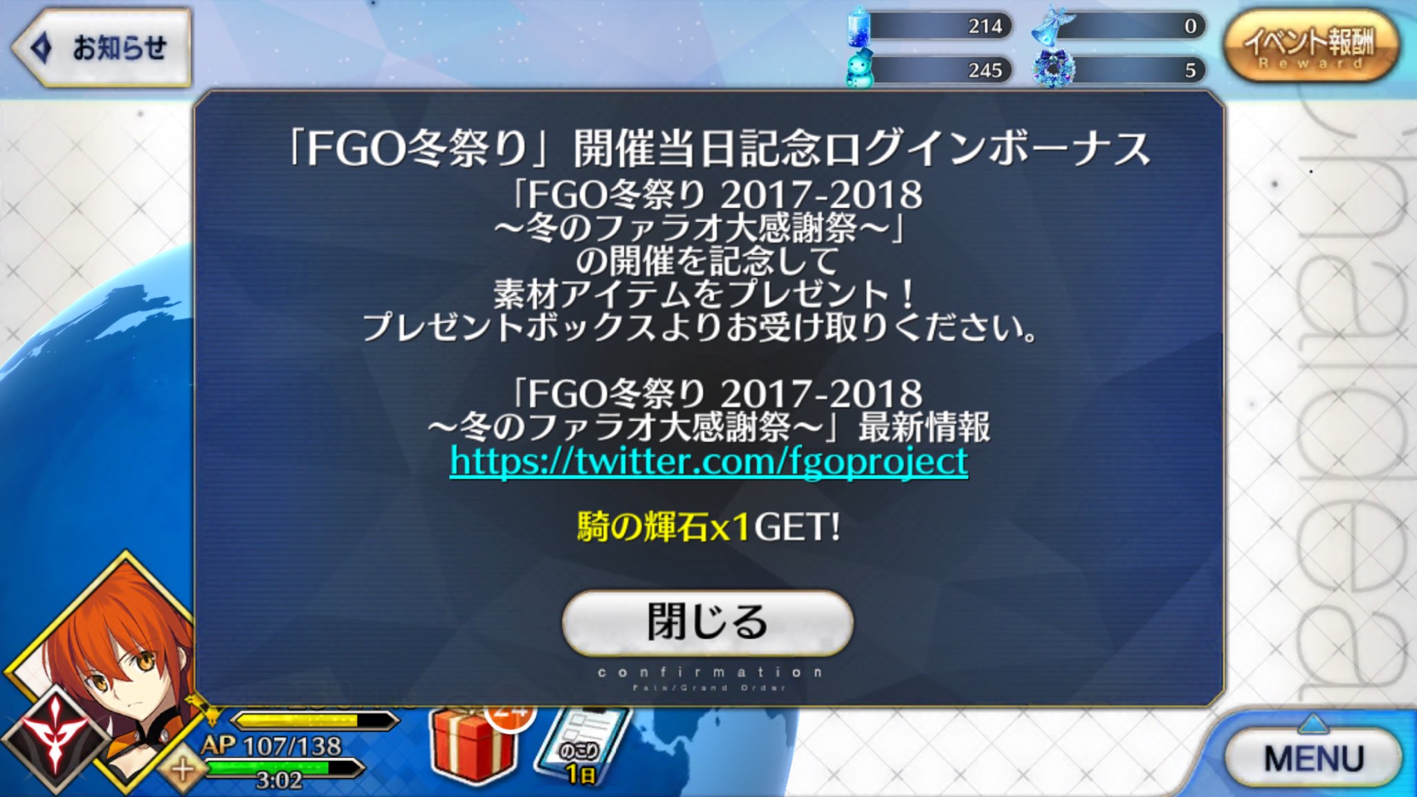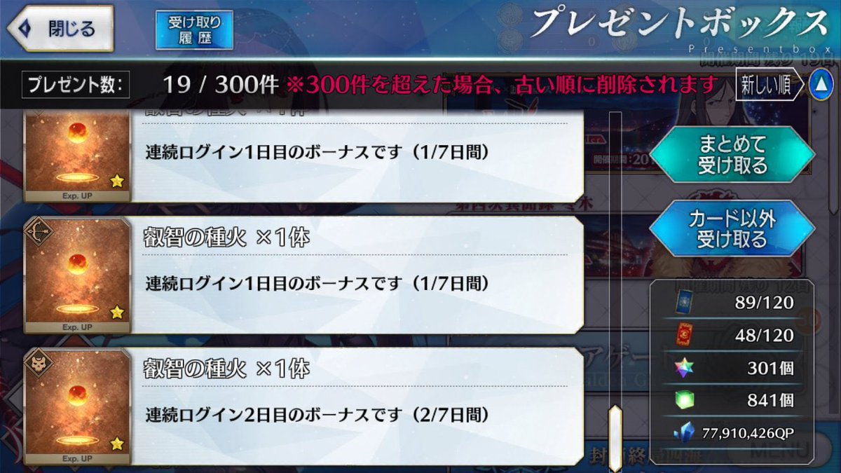 多分いつか忘れるなんか追い聖晶石100個もらったけど マジか