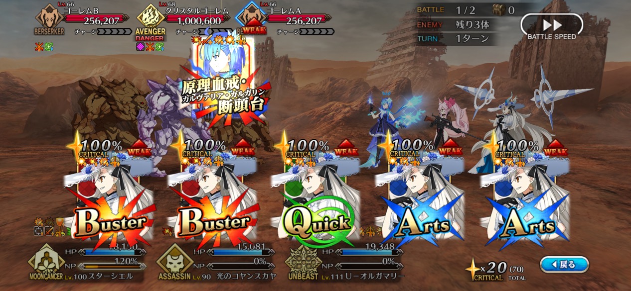 ちなみに今日の強化クエは星5セイバーと星3キャスター
