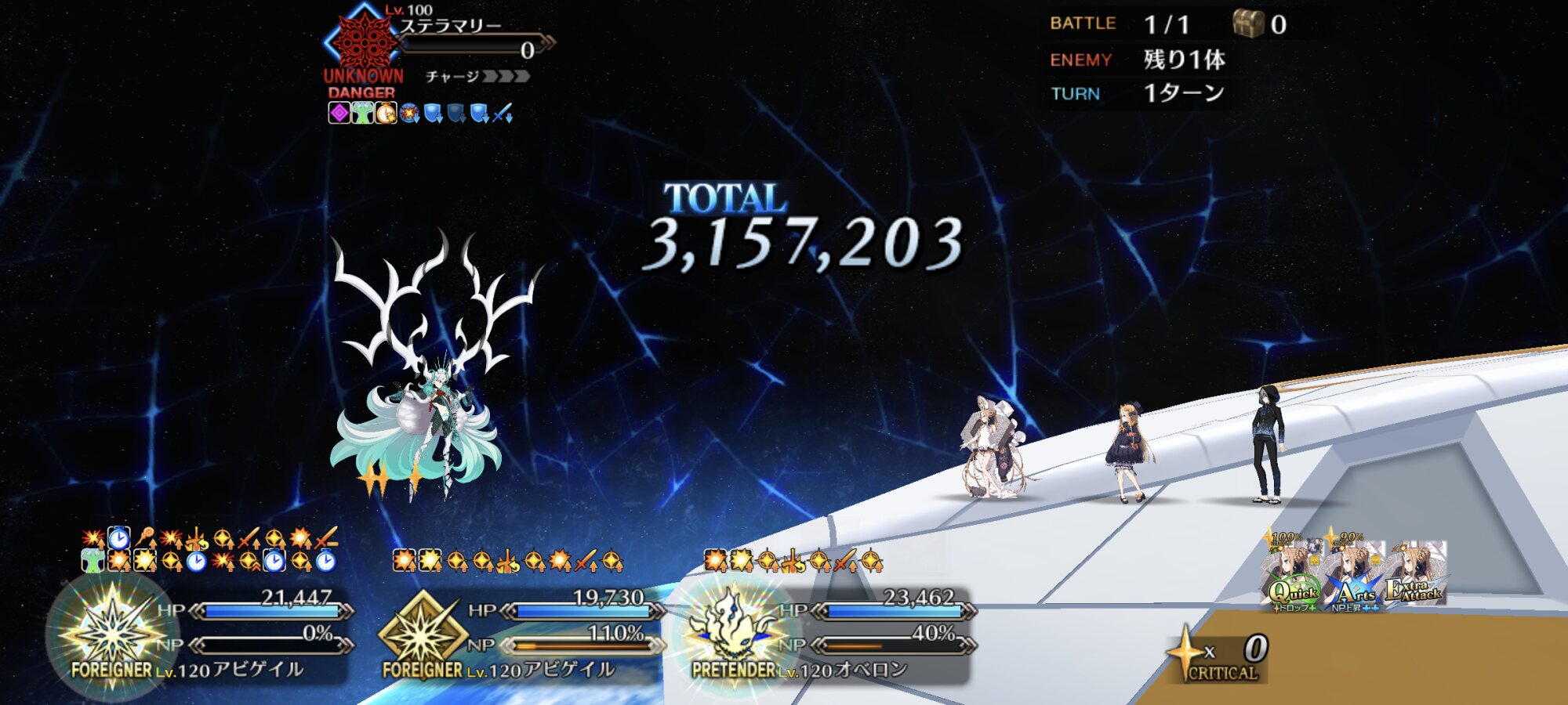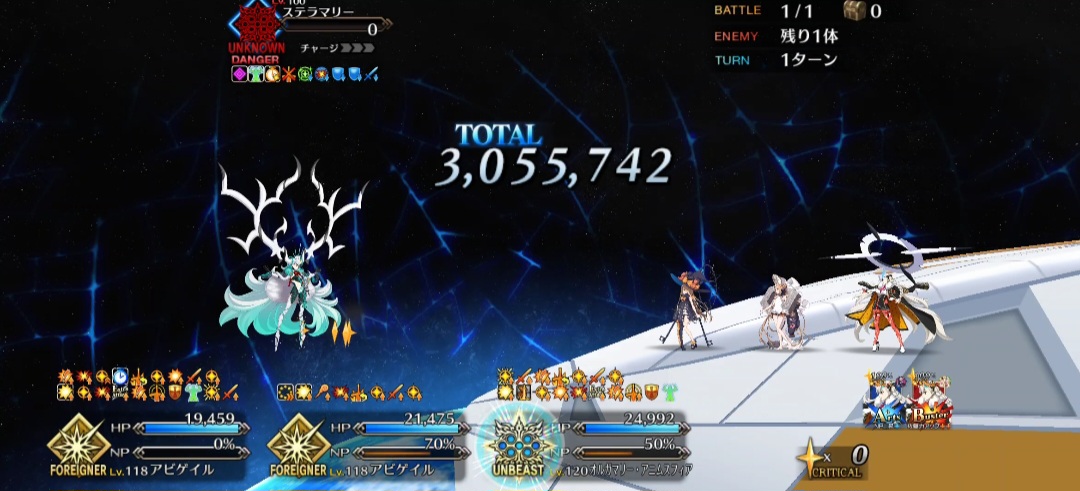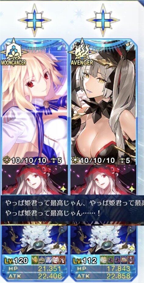 ありがとうございますー!しかし秩序特攻と夢のおわりのチートが入るとはいえ、全体宝具でステラマリーのHP半減させるオベロンさんちょっと火力おかしくない???