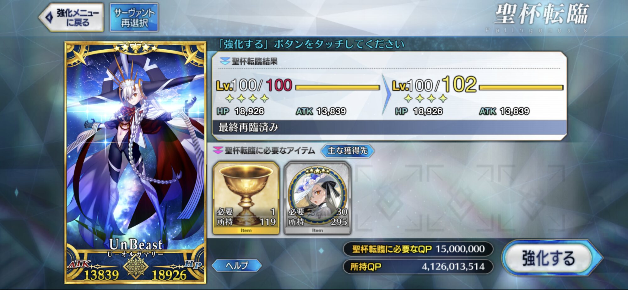 第二部以降の特に難しいのやイベント周回を見据えるならオルガマリーを重ねて宝具2か3を目指してもいいかもってくらい