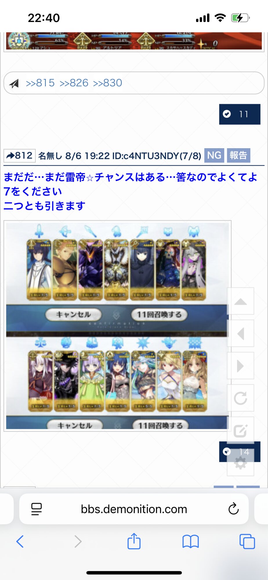 ガチャ報告スレッドその9 https://bbs.demonition.com/board/11902