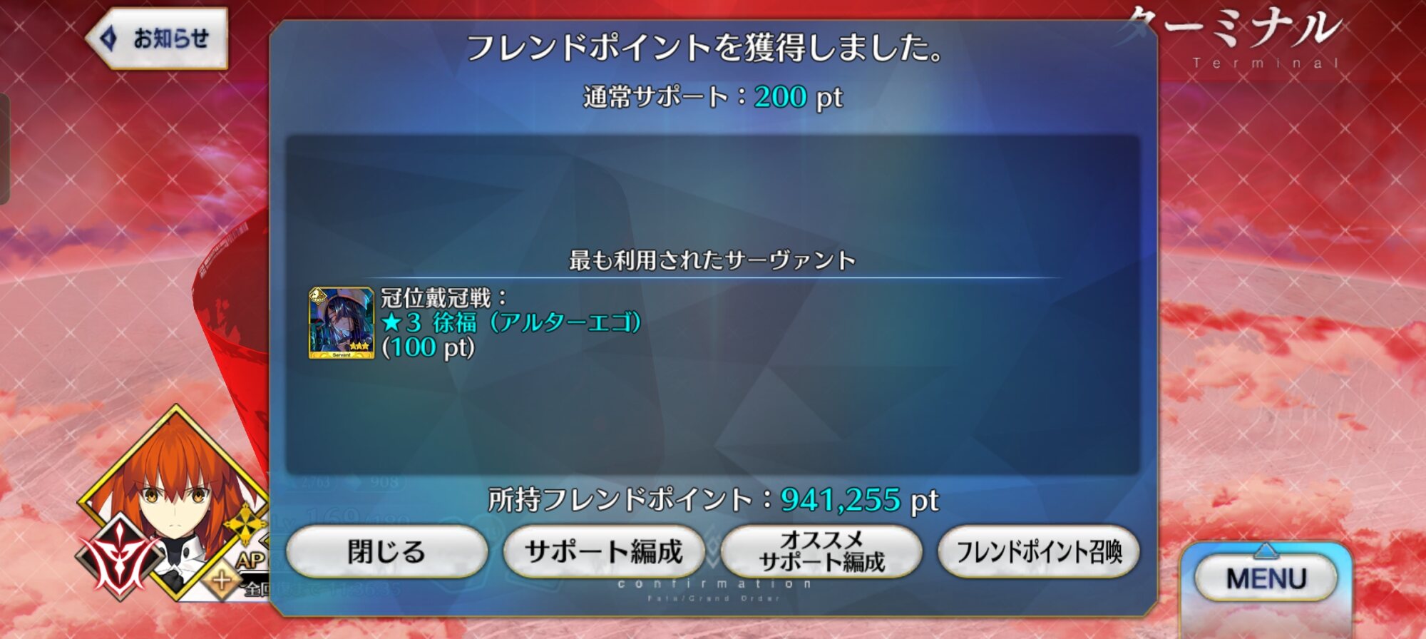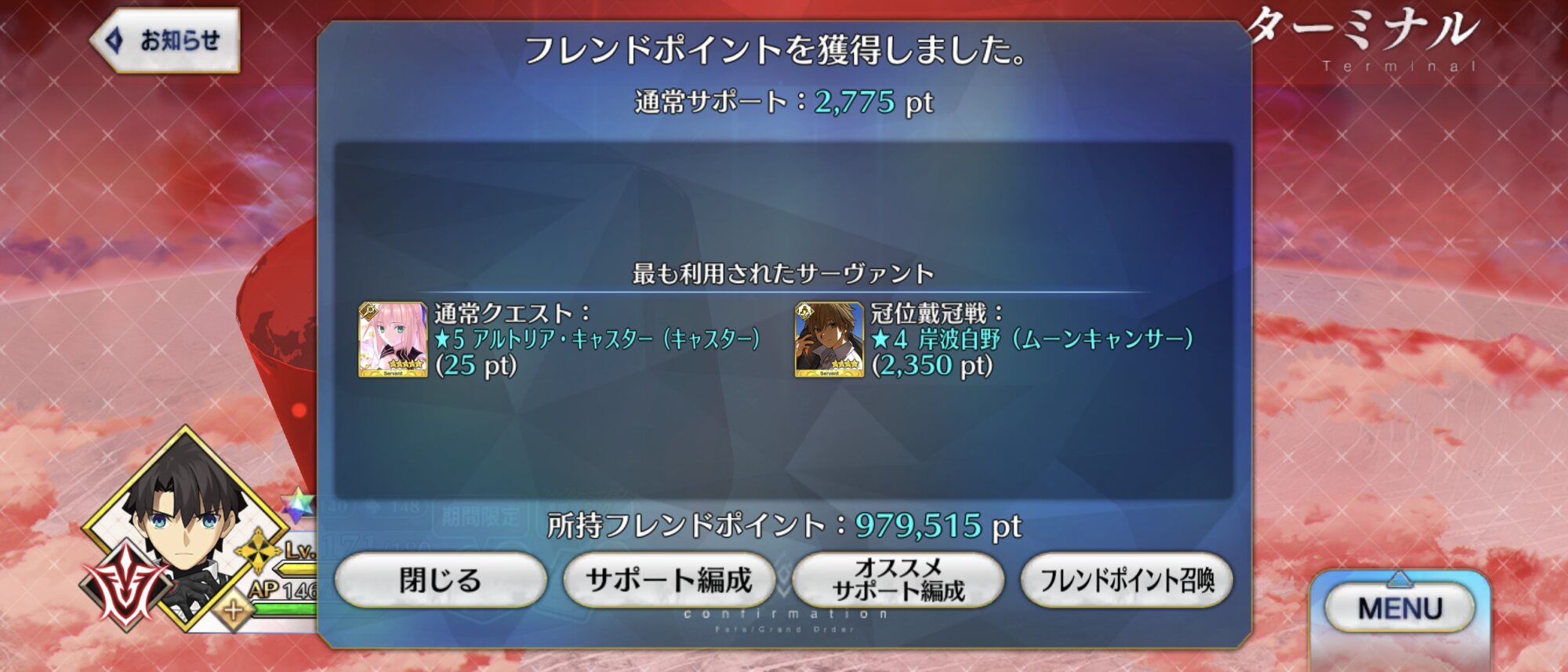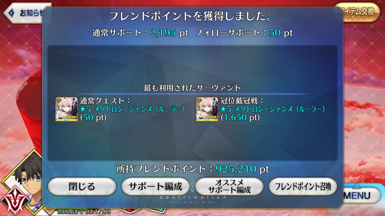 アビコンさんの漢気、魅せて頂きましたよ……!そういえば普段はマシュの絆上げにオデコを周回してたけど、EX戴冠戦中はポッドとお茶消費で戴冠戦を周った方が手っ取り早いか。
