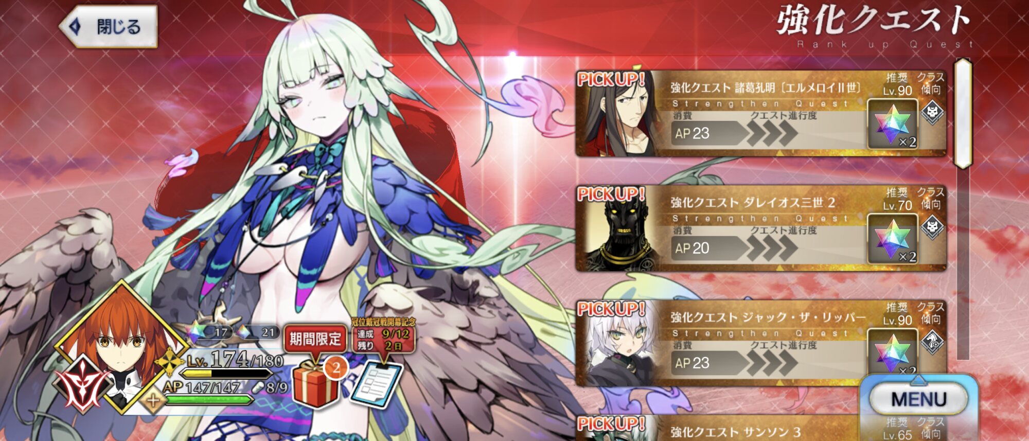 あの手この手で破ってくるの増えたから率直に防御力上げるのが助かる場面多くなってるから結構助かること多い(孔明…まさか冠位戦に向けて自ら周回要員に……めっちゃ助かる)