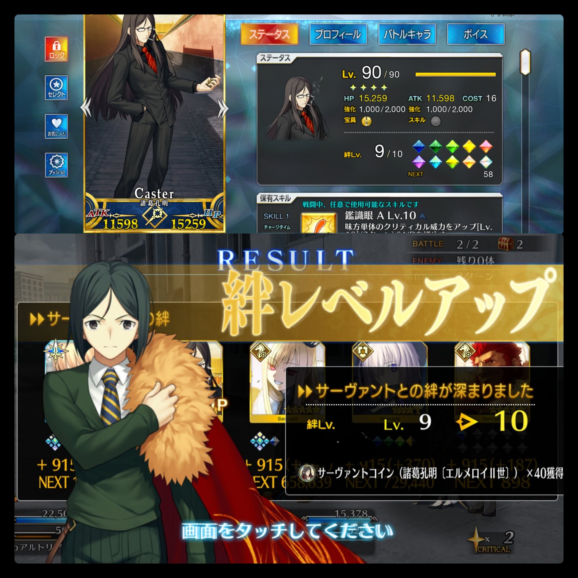 宝具アップとチャージアップで火力も加速した孔明先生スキルのCTも短いからアトラス院にアペンドも合わせると3ターン目にもスキル1使えるのすごい