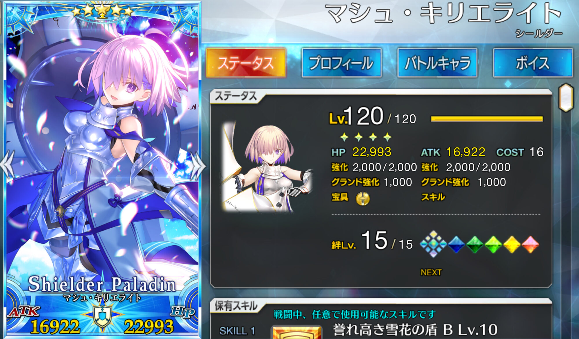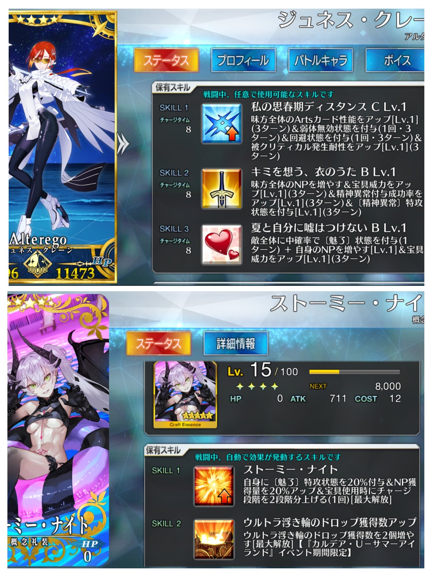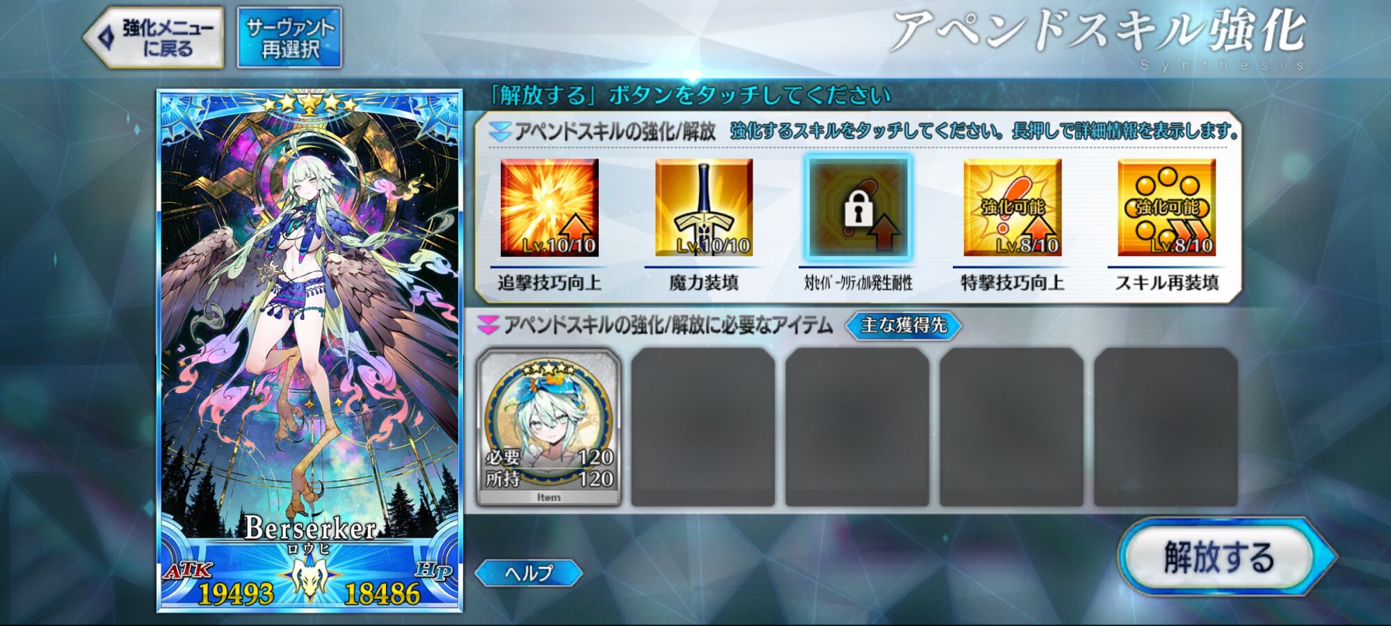 うーん、スキルに書いてあること多いけどよく読むと周回で使いやすい単体剣アタッカーって感じですね……!ブリテンの妖精は着痩せする。