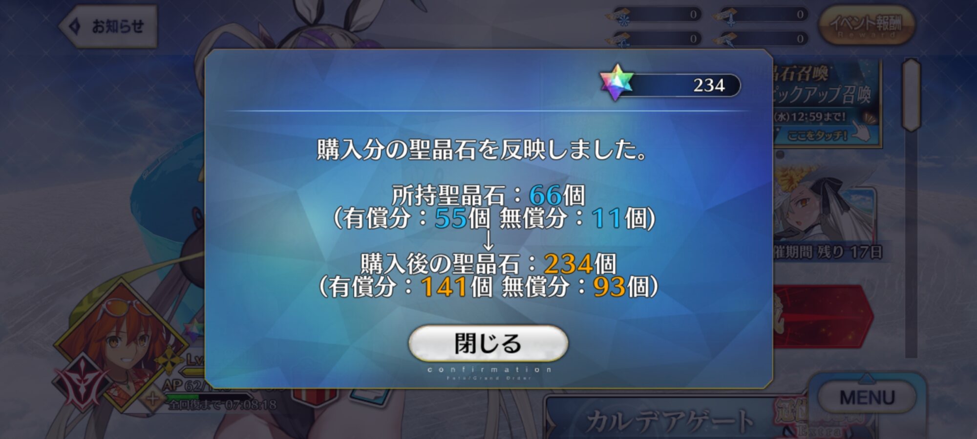 「宝具で一撃」みたいにはならないスター発生とクリティカル系、かなりゆるい気はするジュネス来ませんでした!!!(ティアマトは3になりました)