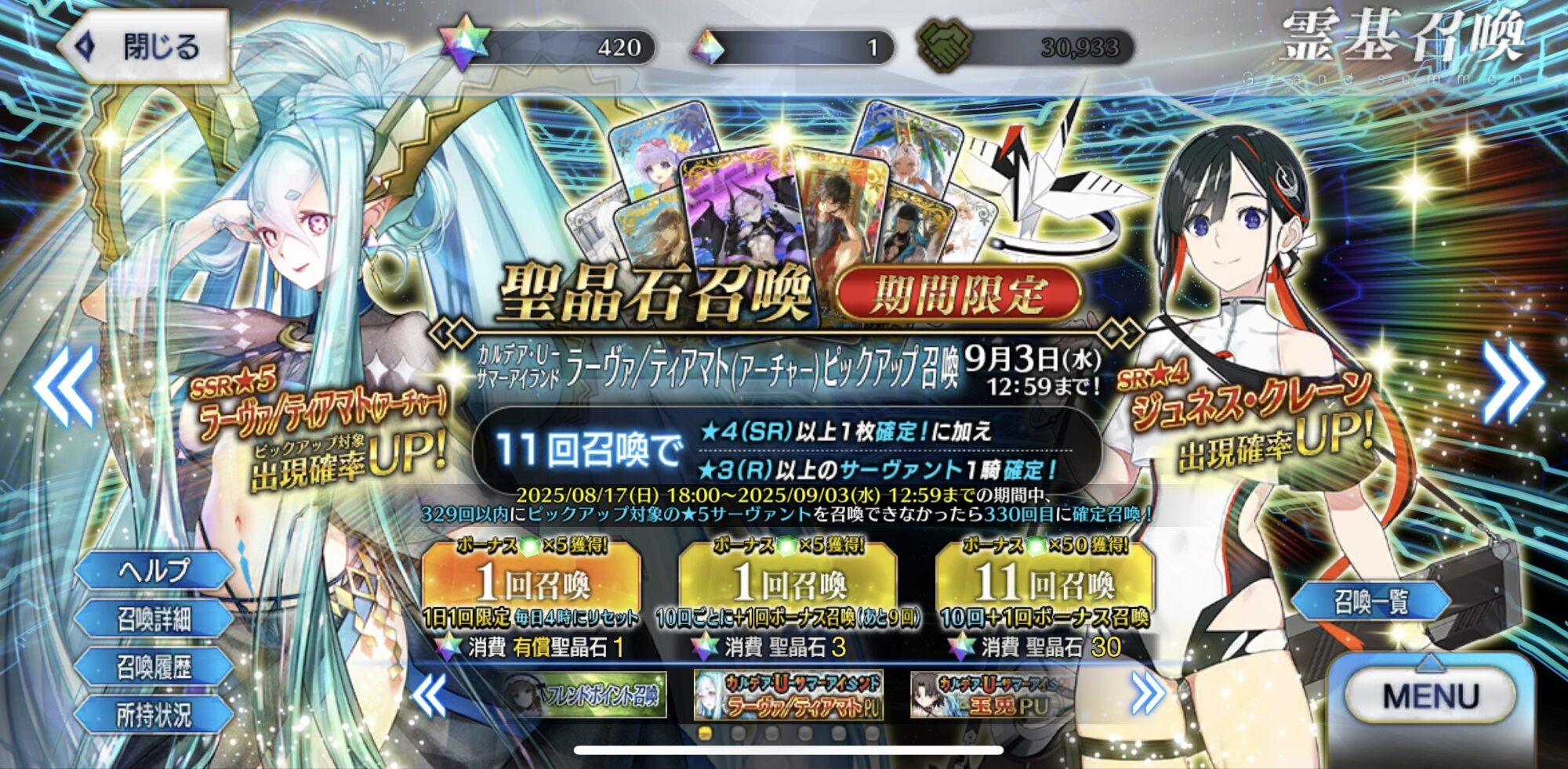公式HP https://www.fate-go.jp母PUは今日の18時から