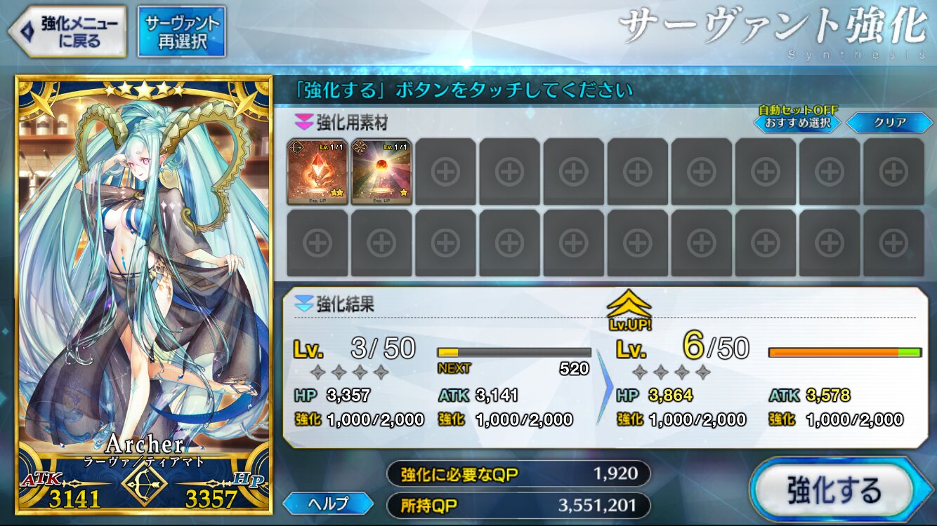 QAバフが宝具レベル依存なのでガチるなら上げないとって感じ>>929