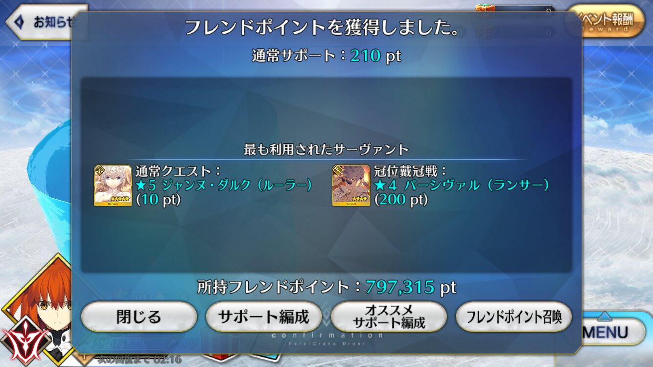 だよね、冠位クロにしようと思ってたけどサポいないしどうかなって思ってたところだから助かった