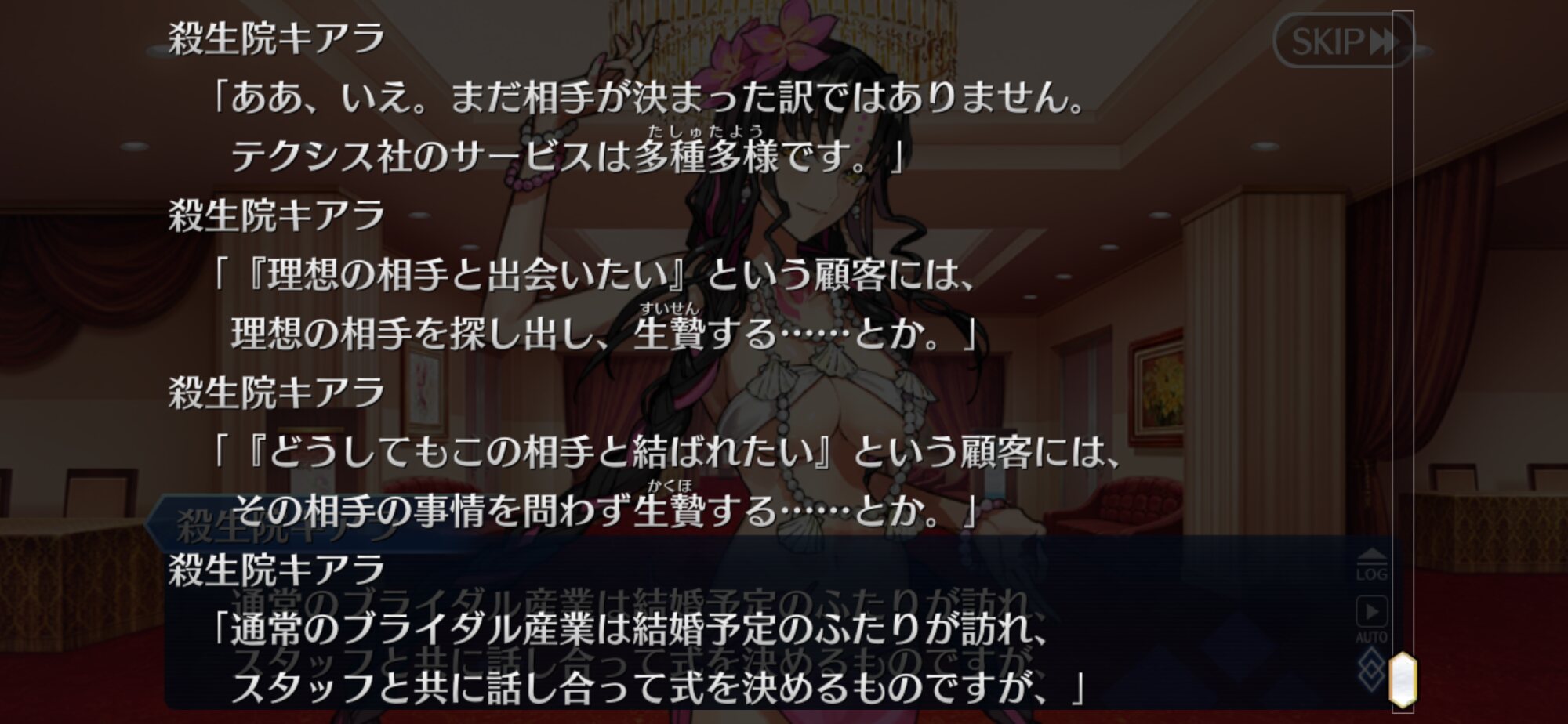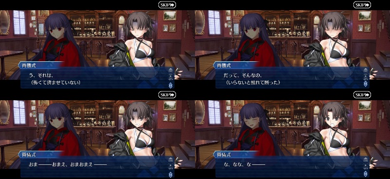 本当に両儀式は…凄い完璧な営業スマイルと接客態度の仮面のすぐ下のあの真顔に、なんでもいいから理想の相手と一緒になりたいなら中身なんてどうでもいいだろ?っていう微妙に突き刺さる言葉といい