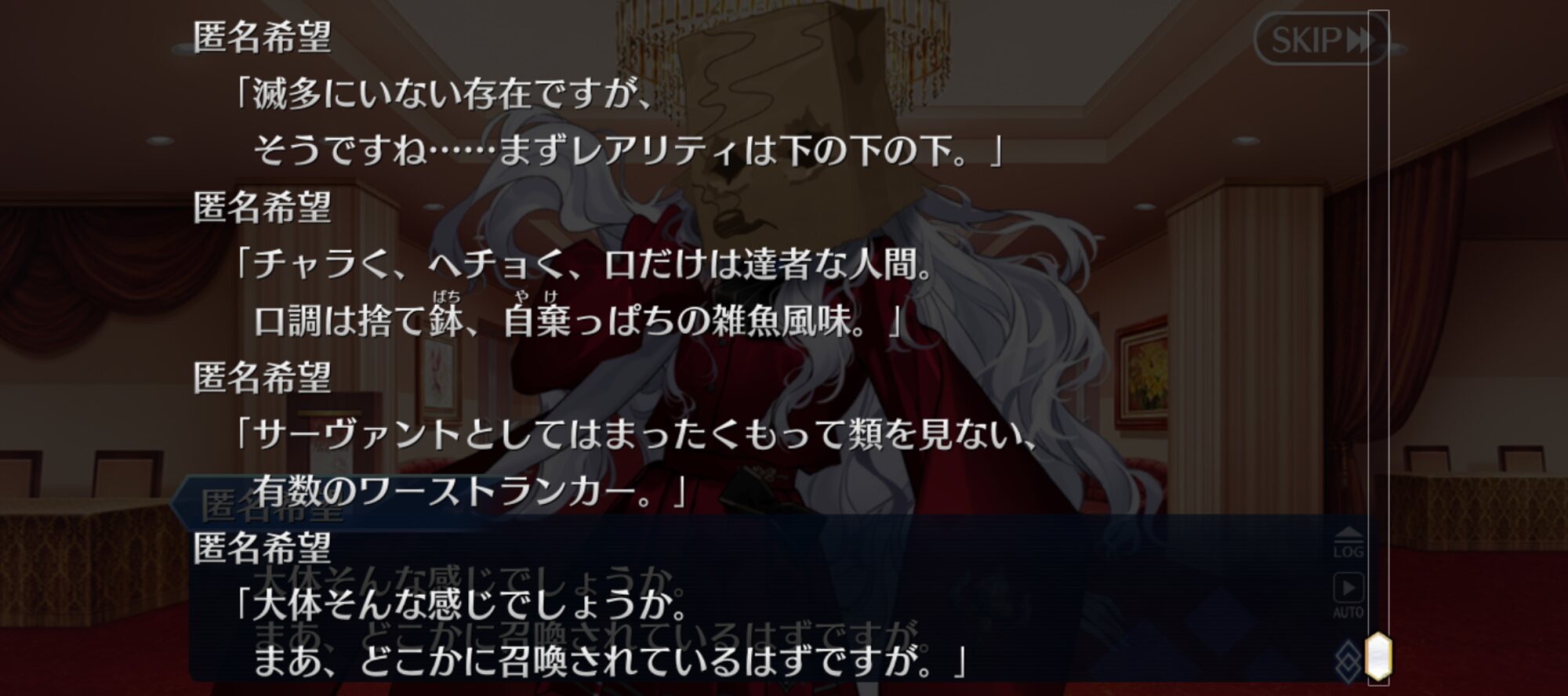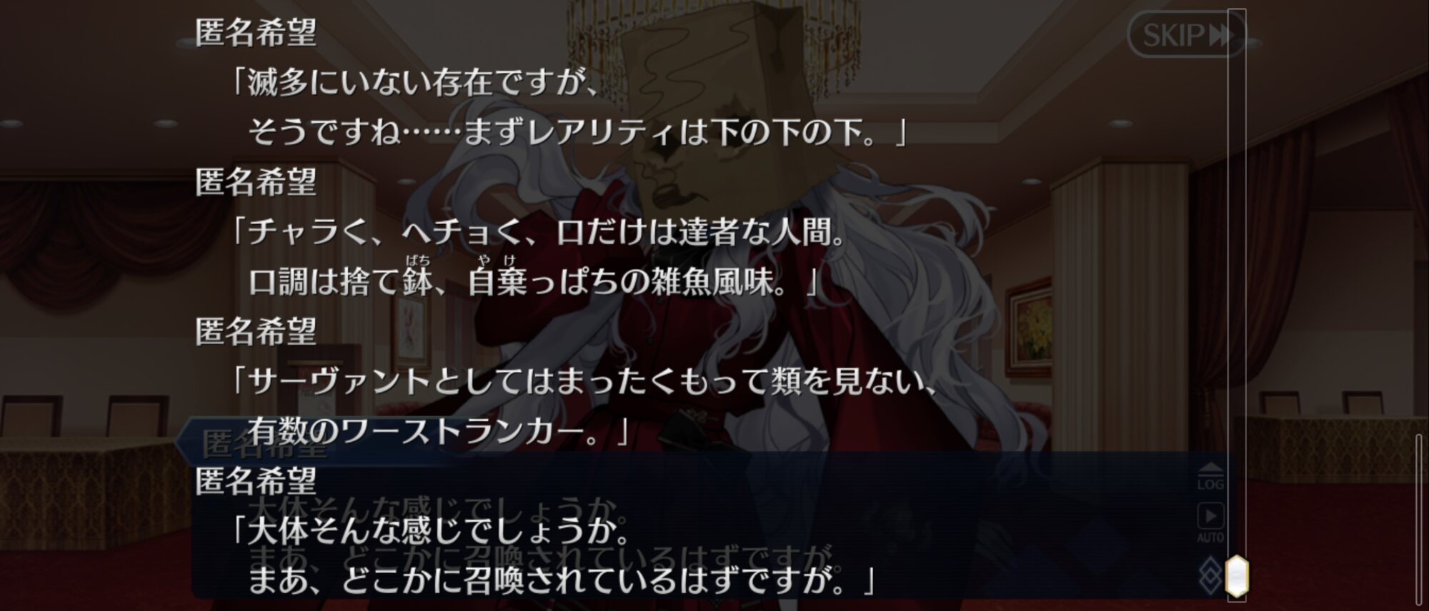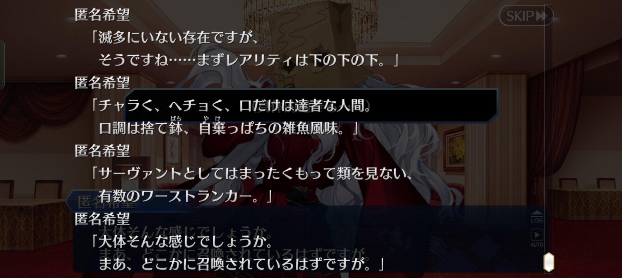 歴戦のマスターをして「世迷言」と言わせた奇行だったな>>14