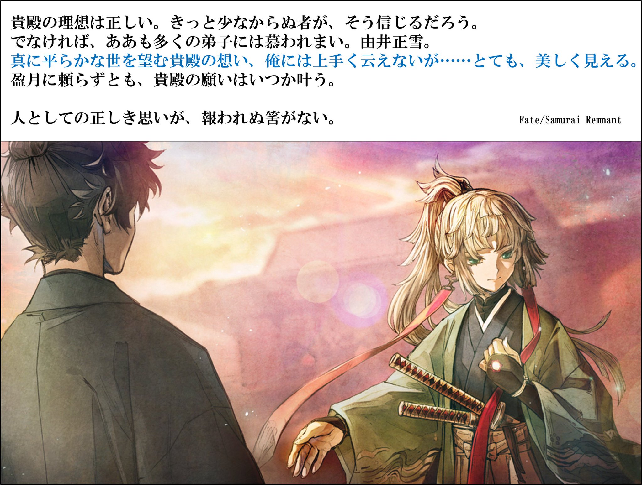 滅多に敵側にはいないけどもしも正雪先生がご成婚成立してたら、ただの怪異をライダーだと思い込んでた(※怪異のクラスがライダーですらない)サムレムコラボでのおいたわしさ再びになるとこだったから、婚姻遍歴が凶ってくれてよかったなって