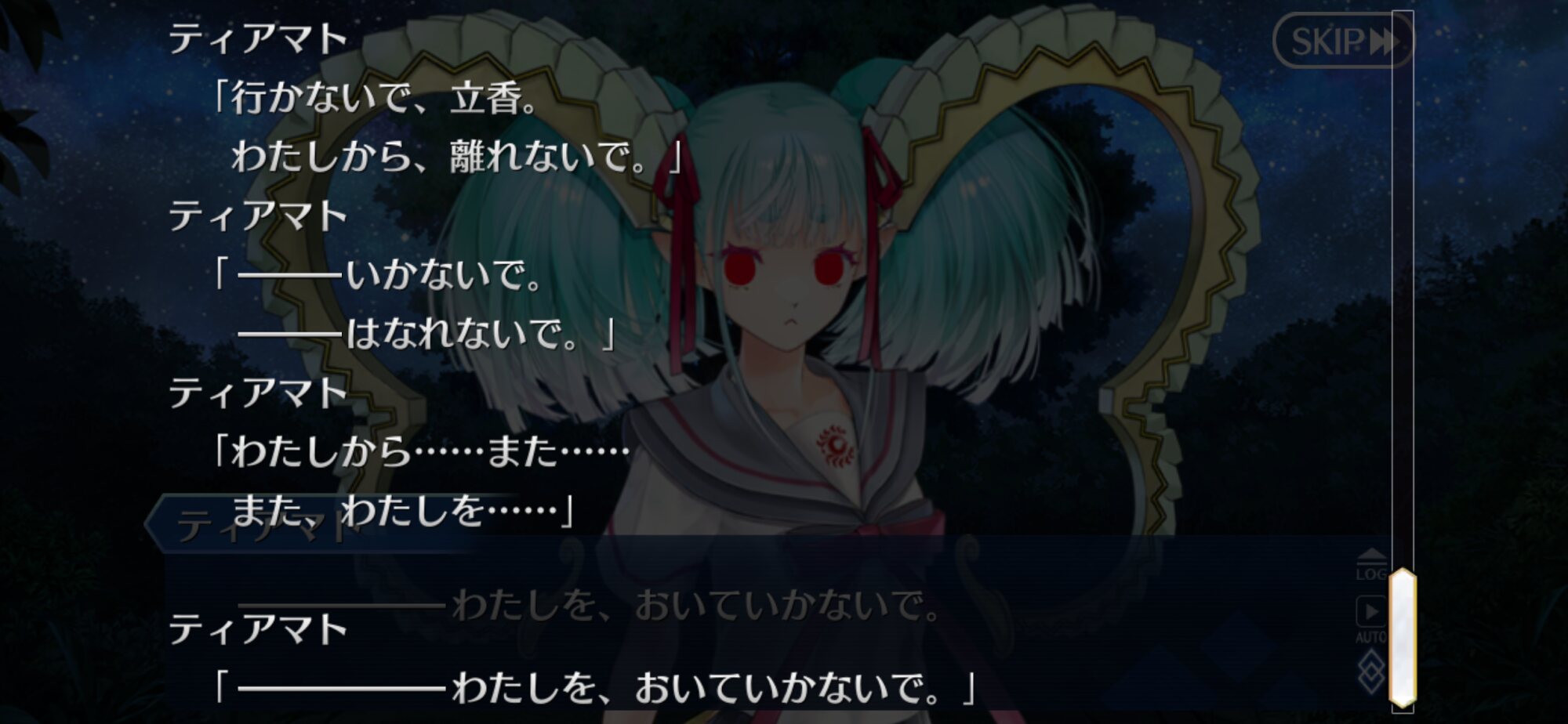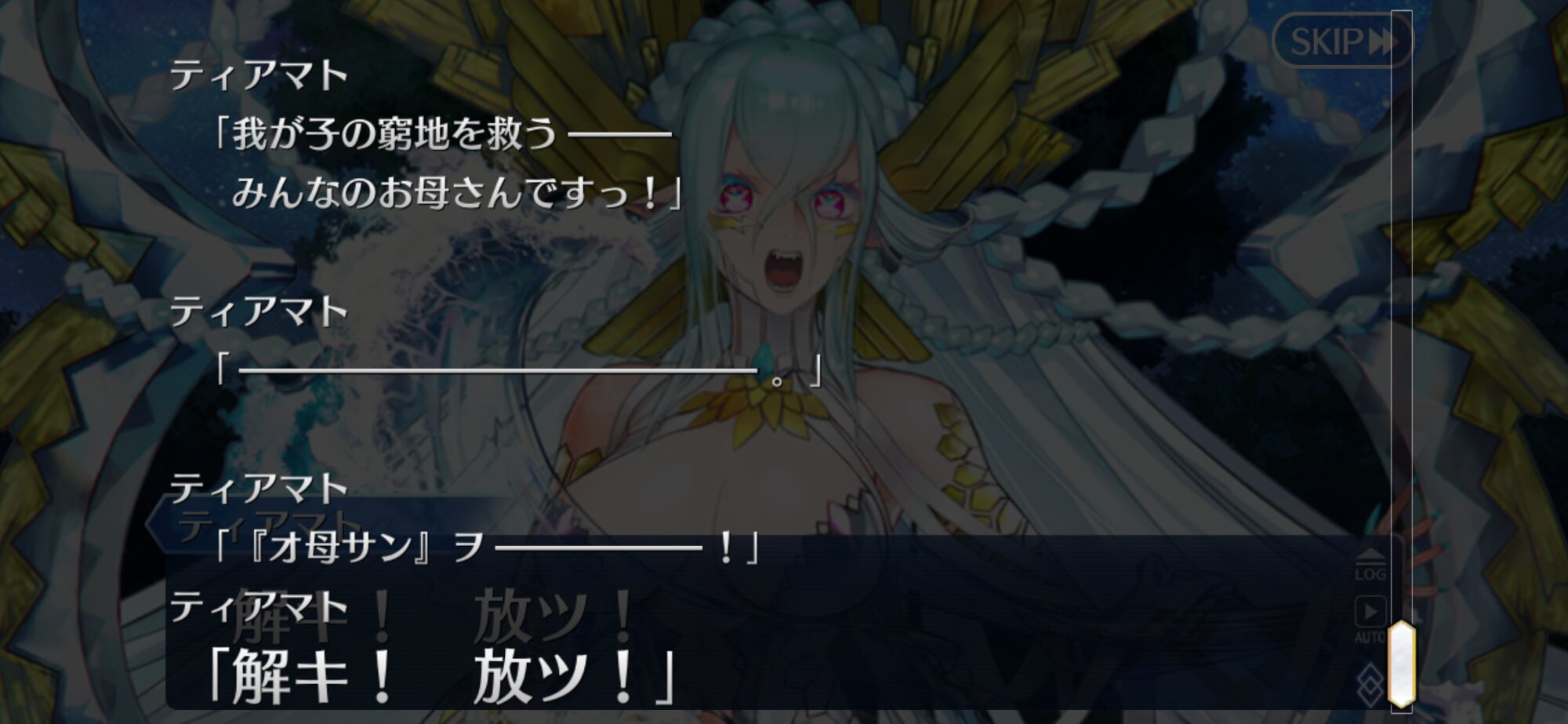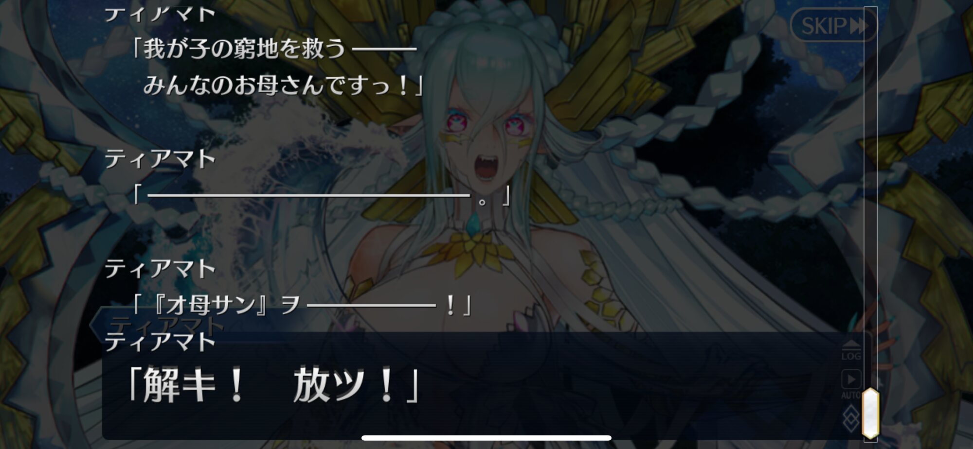白い選択肢最後の全員集合は、ティアマトエリア魔力切れで、ティアマト宝具の効果がきれたから正気に戻った感じかな。>>902