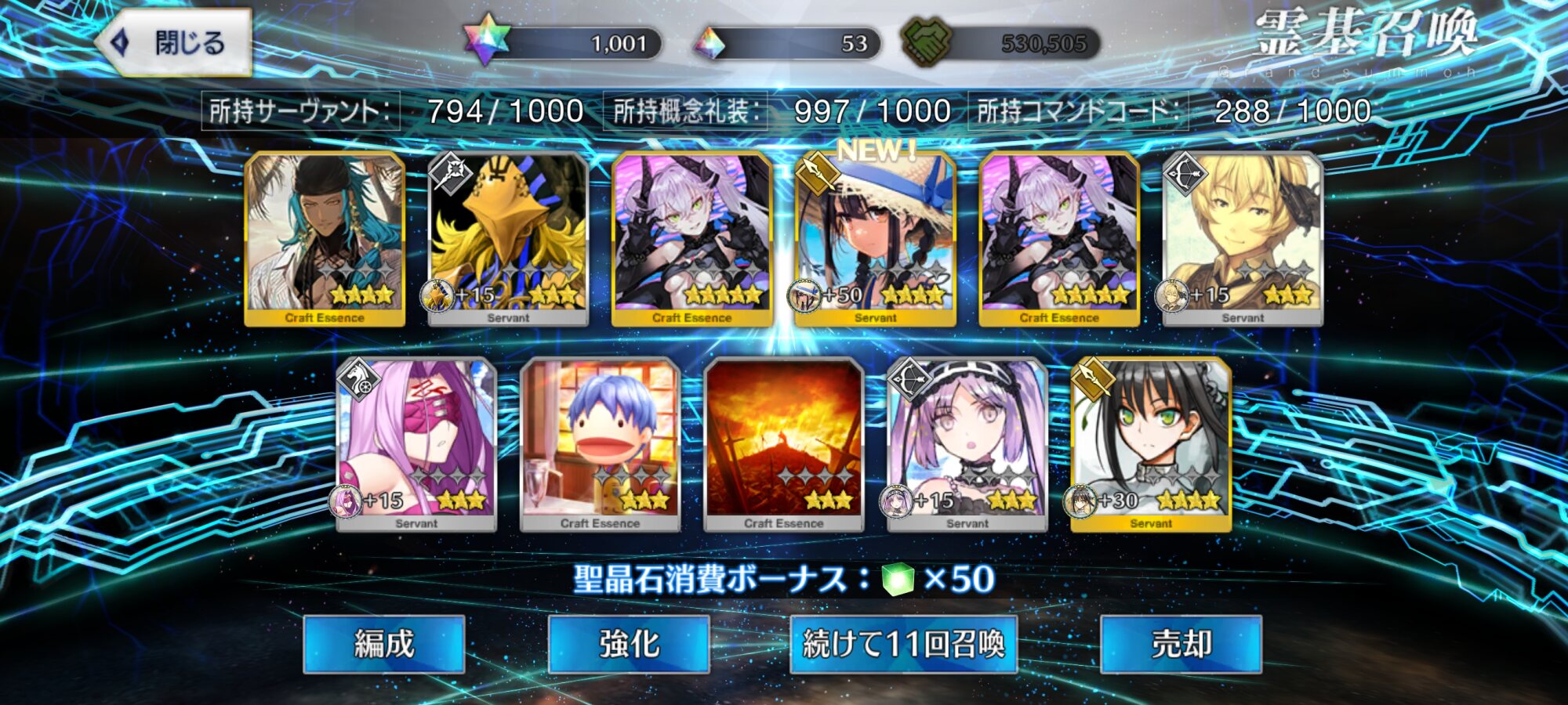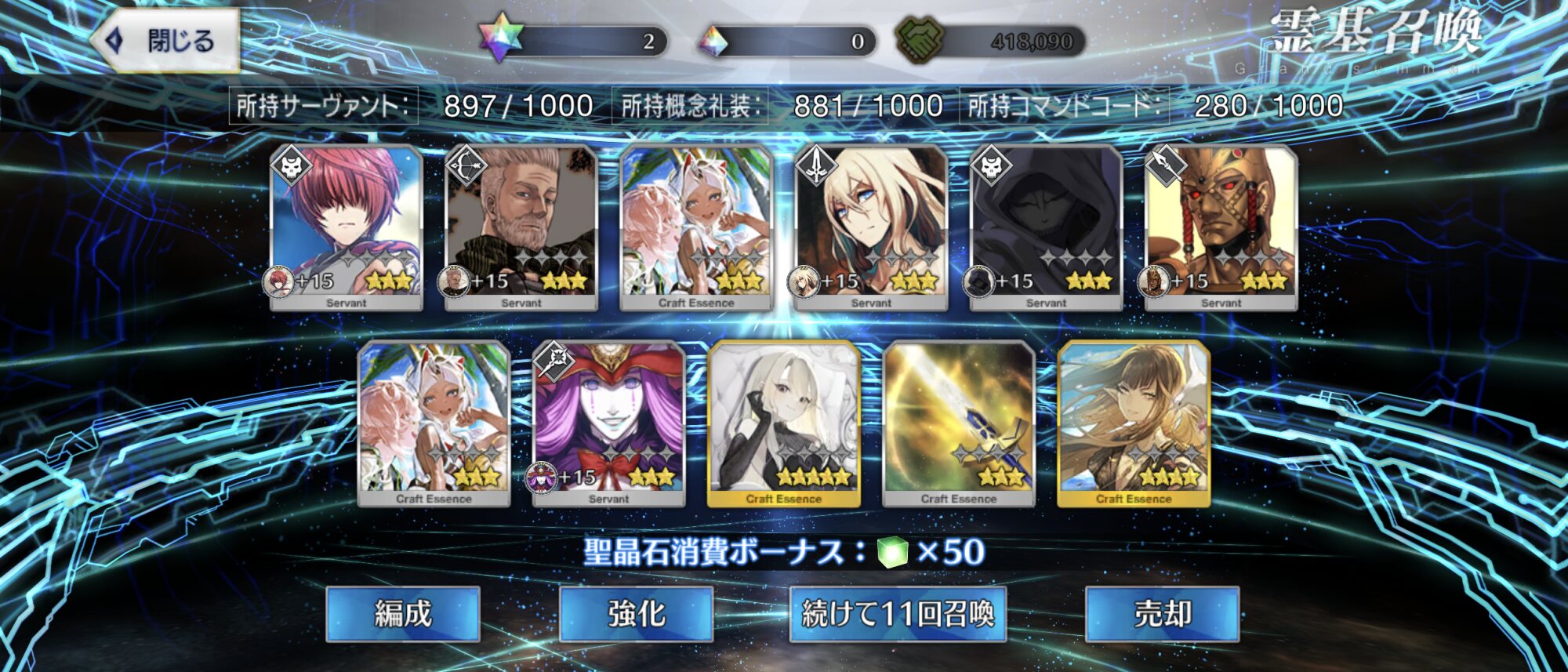 武蔵ちゃんを引かないか。貫禄でいうと凛と上杉謙信と卑弥呼さんはCVがもうね。