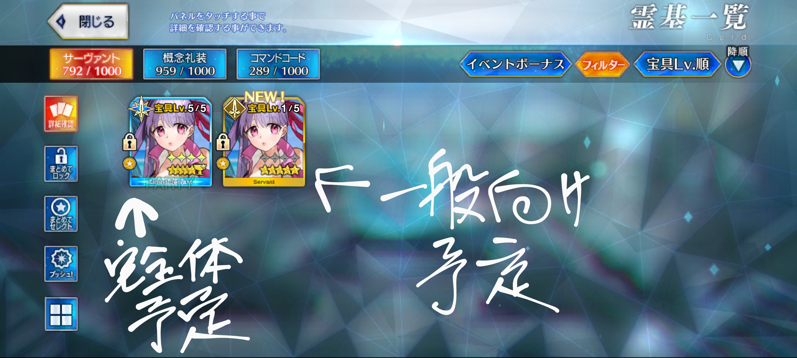 わかりました。ノア(二代目)ですね戴冠予定のキャストリアを120にして聖杯が余りそうなら、推しの2基めを120にしてもいいかな…くらいは考えるかなあ…