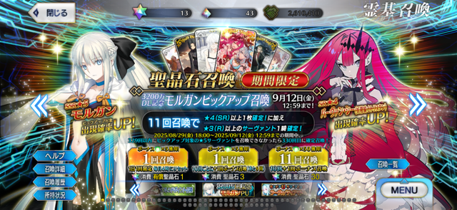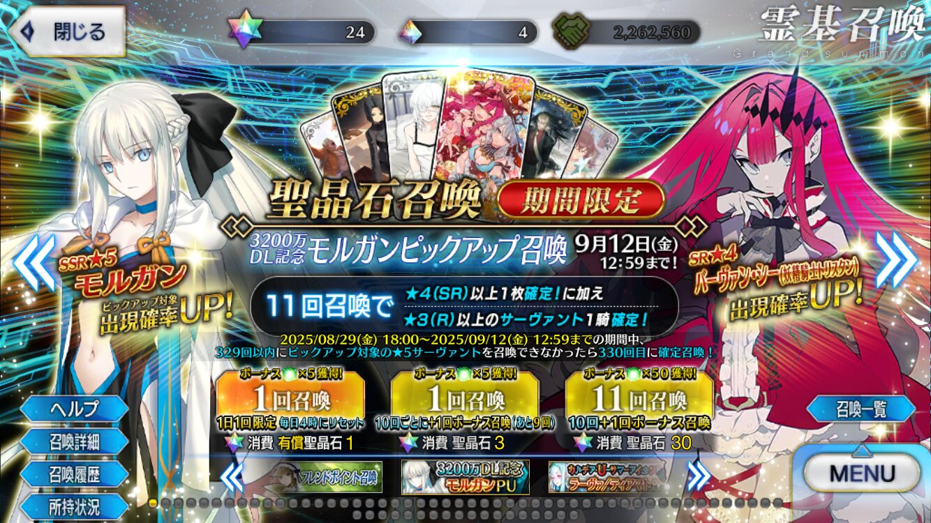 「アヴァロンルフェクリアしてモルガン陛下欲しくなったけどPUやってねぇ~!」というマスターに刺さるよなこのタイミングでのPU