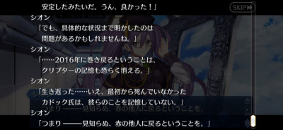そこらへんクリプター達もそもそも顛末的にそれぞれの記憶は何処の時点まで保有してるのかとか境遇はとかで滅茶苦茶変わってくるのでなんとも言えぬのな。終章を終えたとしてどれだけ解決できるのか。そもそれ以前に現状で「地球白紙化という問題以外にもどんな問題が起きているのか?」まで詳細は分からんという。ある程度ヒントは挙げられているが。南極で「何が」「誰が」待ってるのかも予想できぬ>>932
