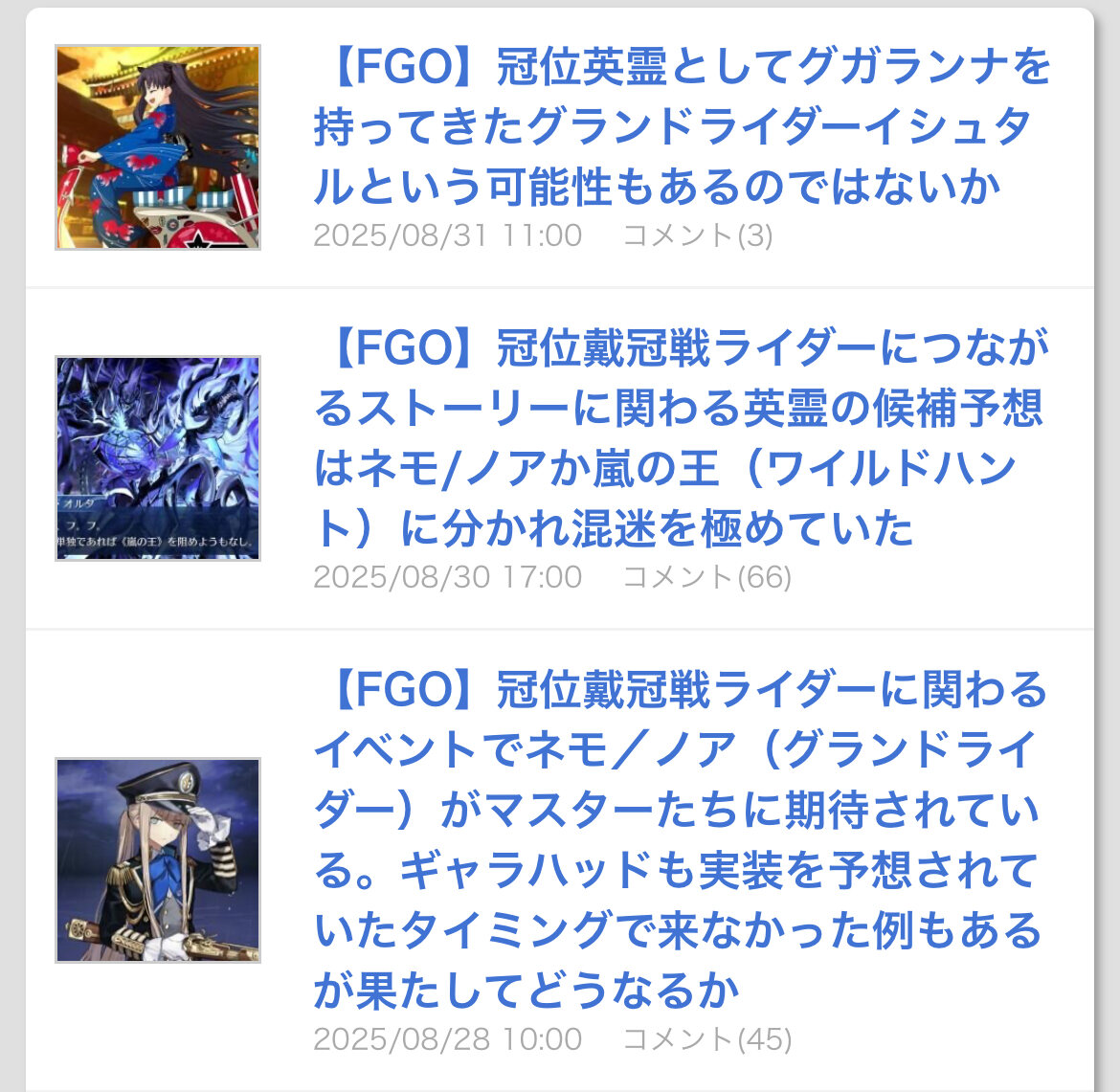 ネタバレ、最終再臨バレに関する話題で書き込むのが躊躇われる場合は以下のスレへ↓