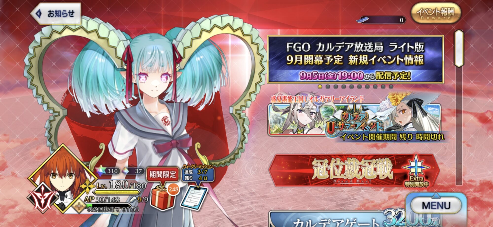 122です次のイベントがレイドなら、願わくばお茶が一月ぶんくらい追加で配布ありますように