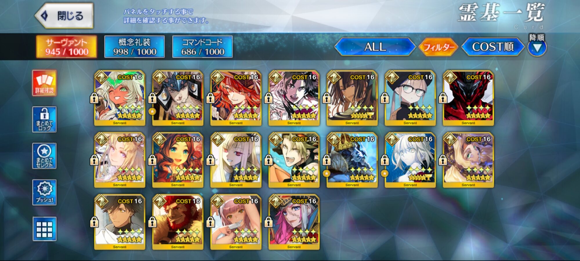 うちはレベル120絆15だけど、多分シナリオで強制出撃でもしない限りはずっとコスト0のままだと思うわ…。>>980