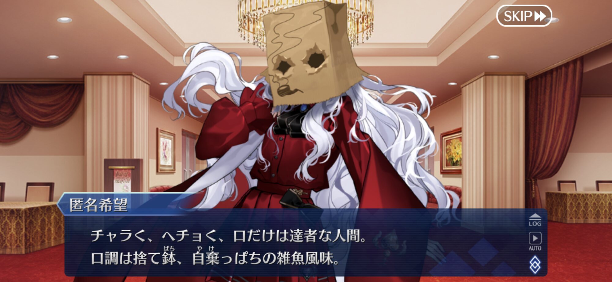一般通過妖精「最近は自分じゃなくて持ち物の方を飾るのが流行りだから藤丸の方が目立ってるのよね!」「拙者はと申せば、せいぜいが燕を斬ろうなどと思い立つ程度の暇人。通されよ」