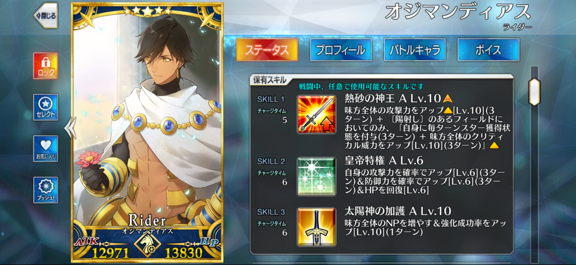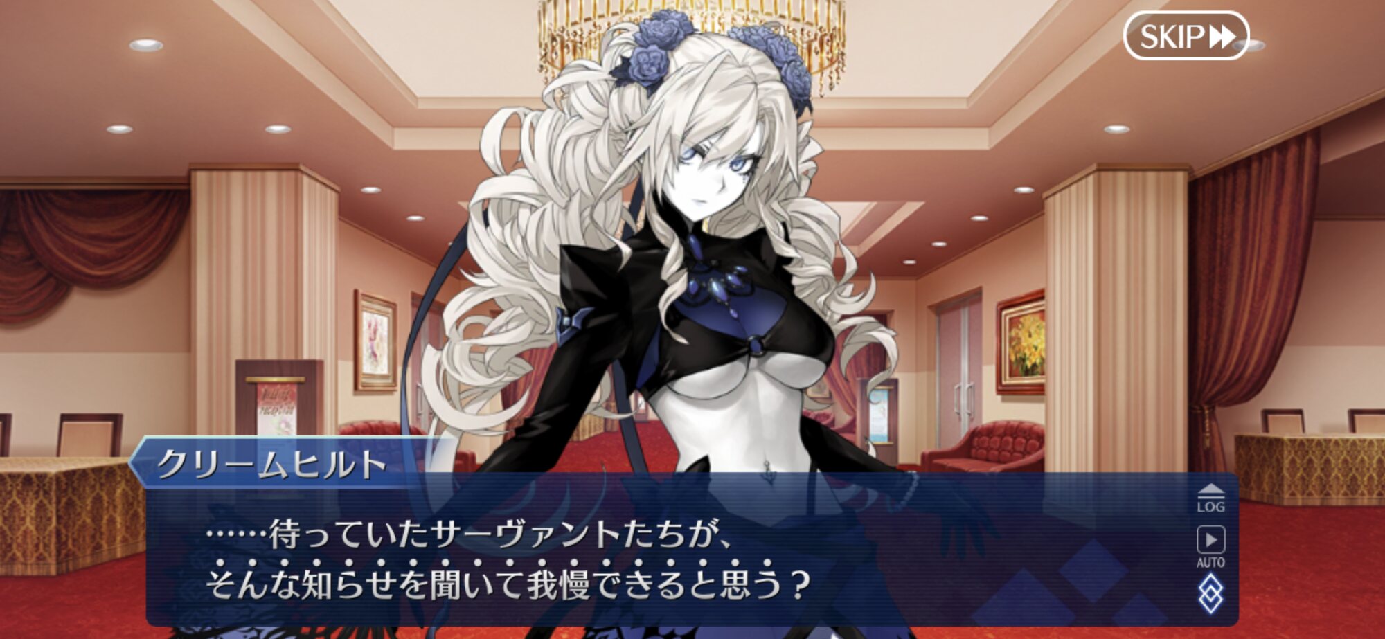 スキル1『位高き乙女の矜持』自身のAB性能とNP獲得量アップ+無敵2回を3T付与。悪役令嬢を名乗るだけあって格式高いスキル名ね