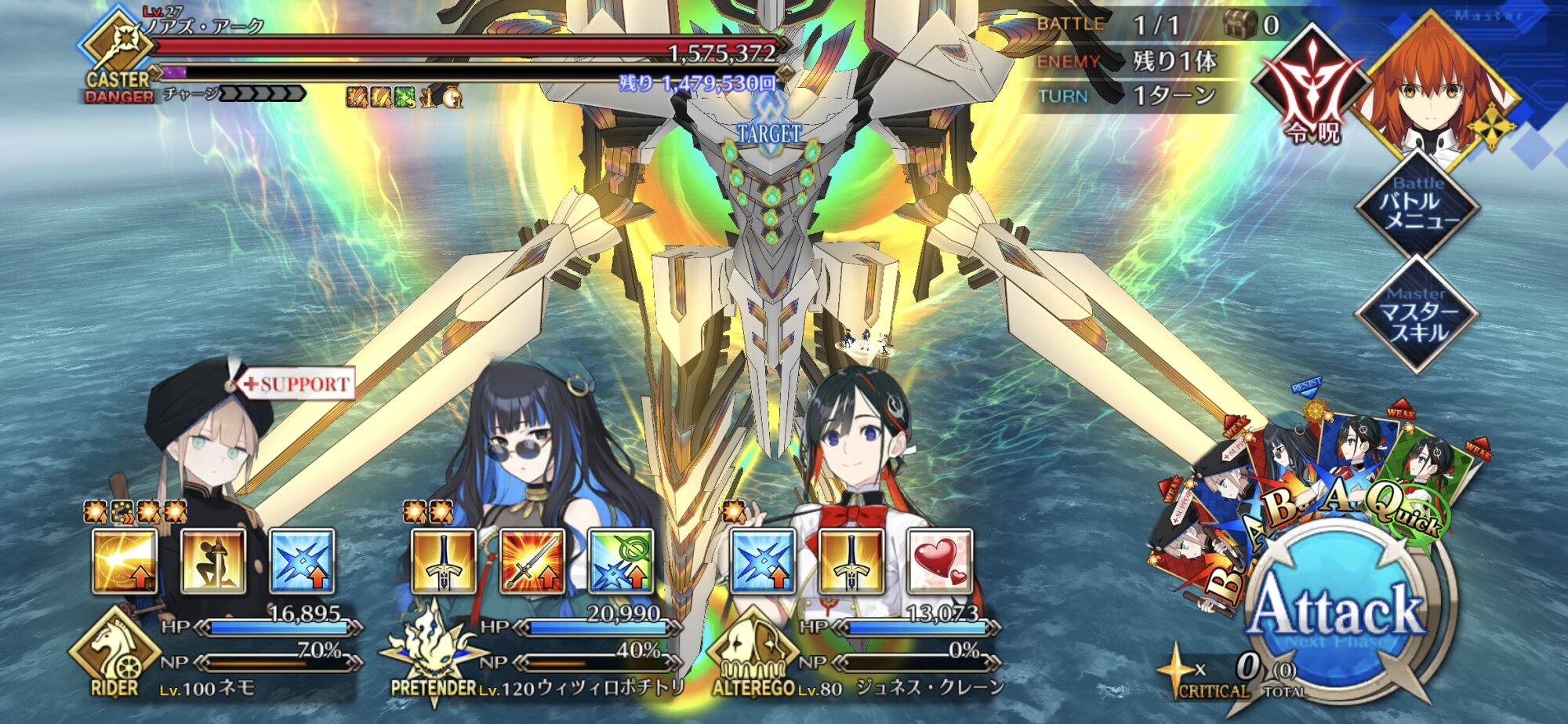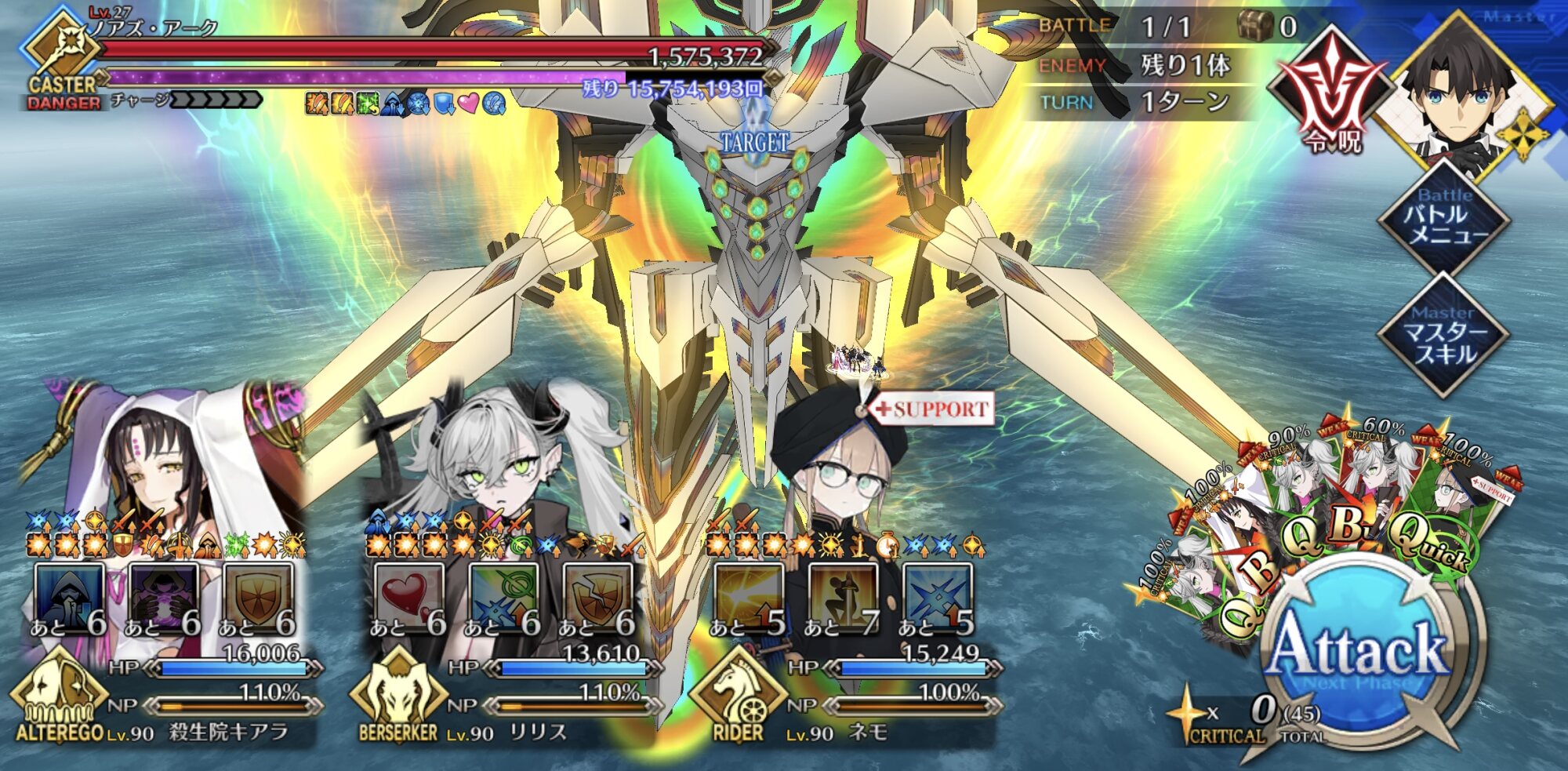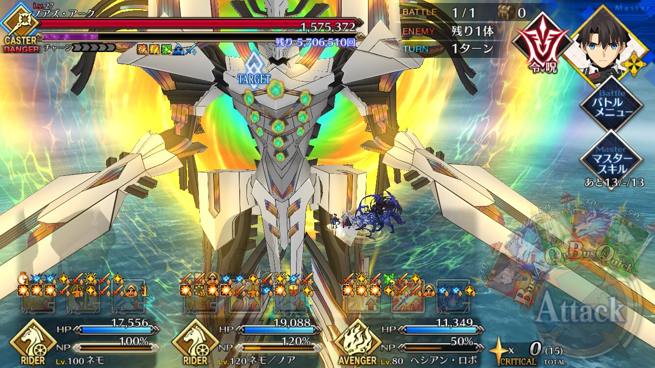 ネモ船長が刺さりまくって強いしガッツ後はサブアタッカーの宝具だけでも削りきれるけど、速さが求められる現状はそれよりもガッツ解除だね