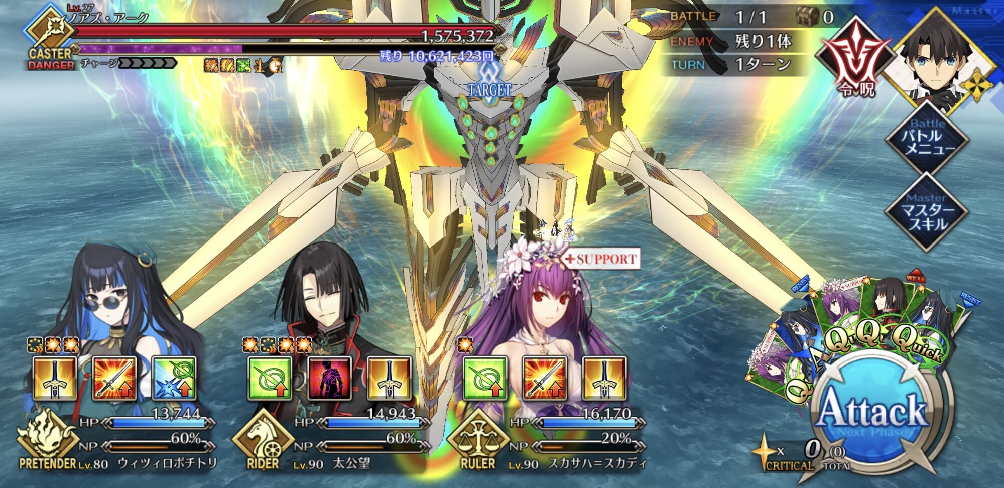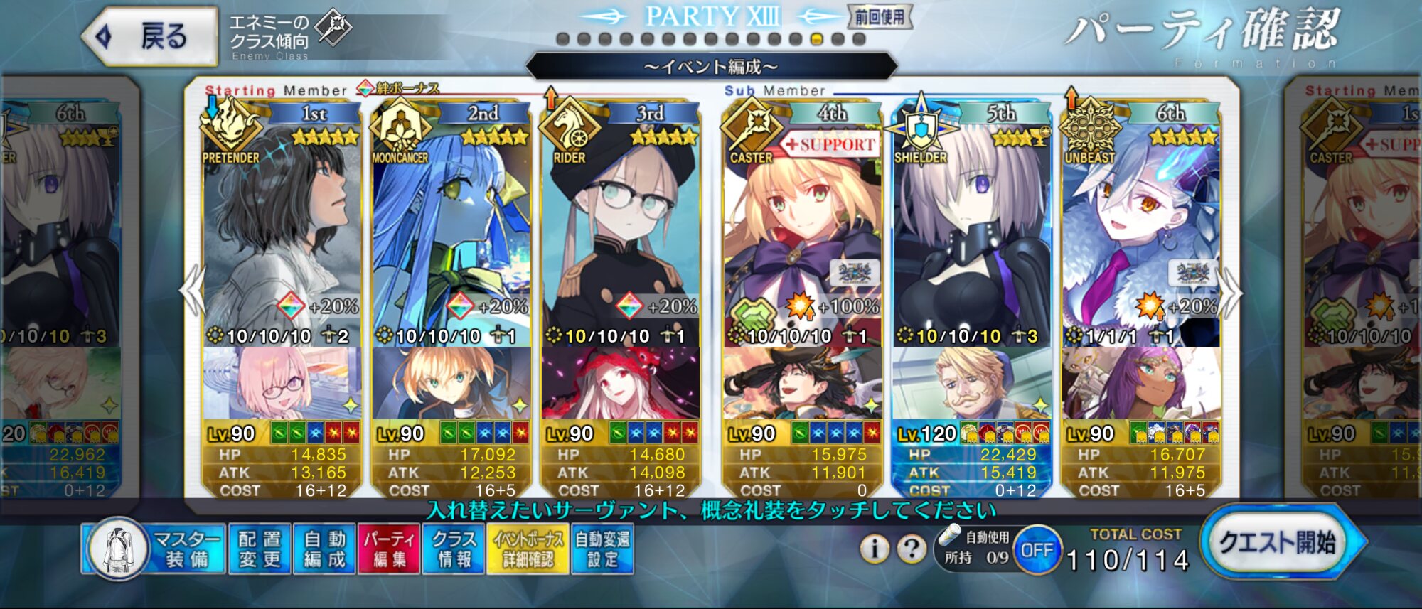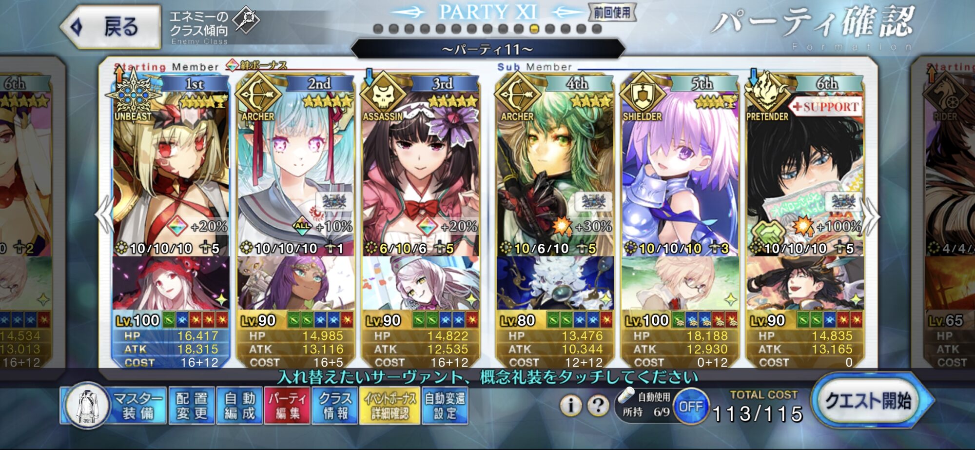 Wキャストリア+テノチでガッツ解除+100レベ龍馬(未凸イベ星5礼装)で90+++も回れるわ。