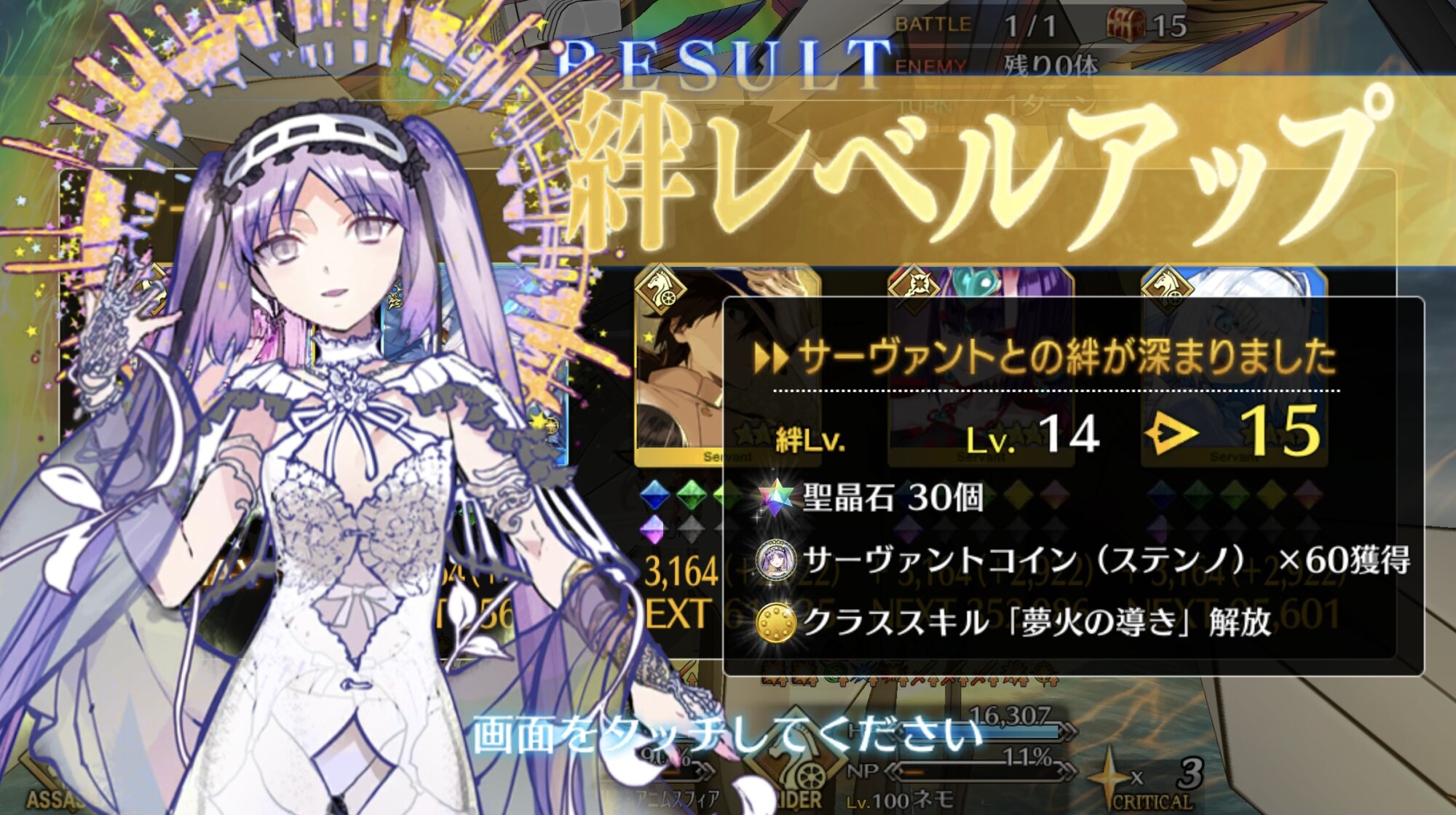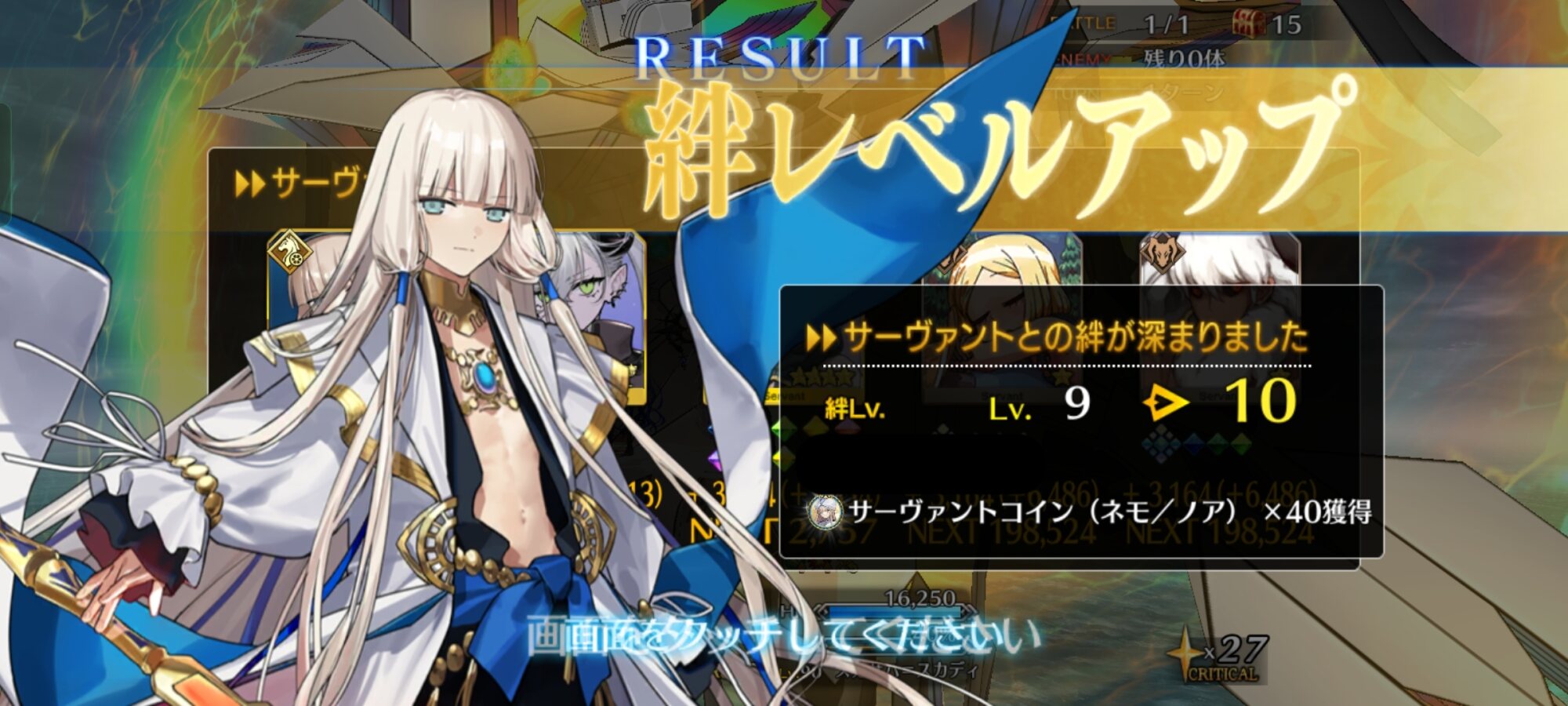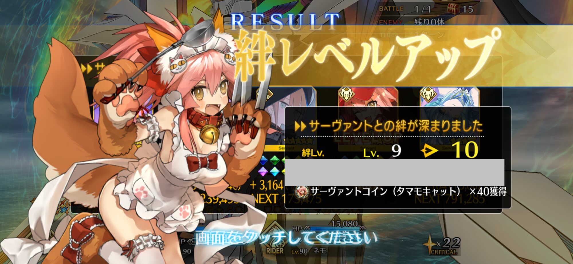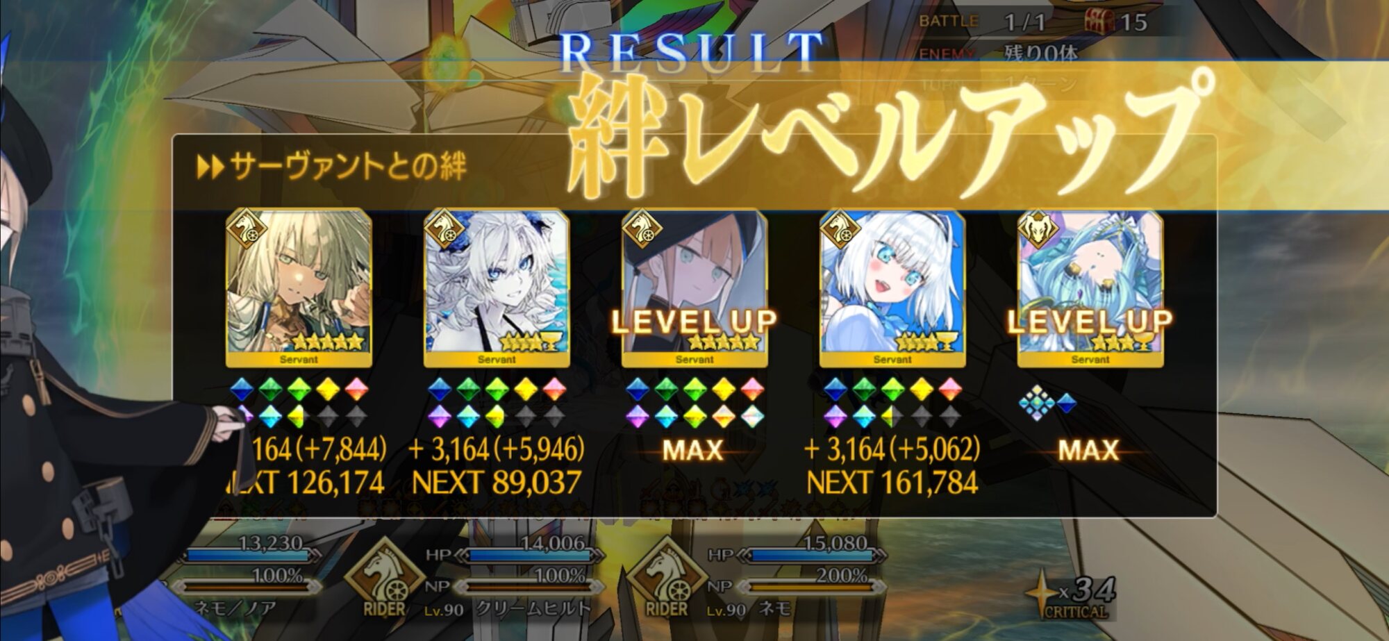 ライダースコア開けてる分もあるかもしれないが、次の戴冠戦がライダーですぐ来るし、問題ないな。サポに入れたテノチの絆がお茶と礼装効果でめっちゃあがっていく・・・。