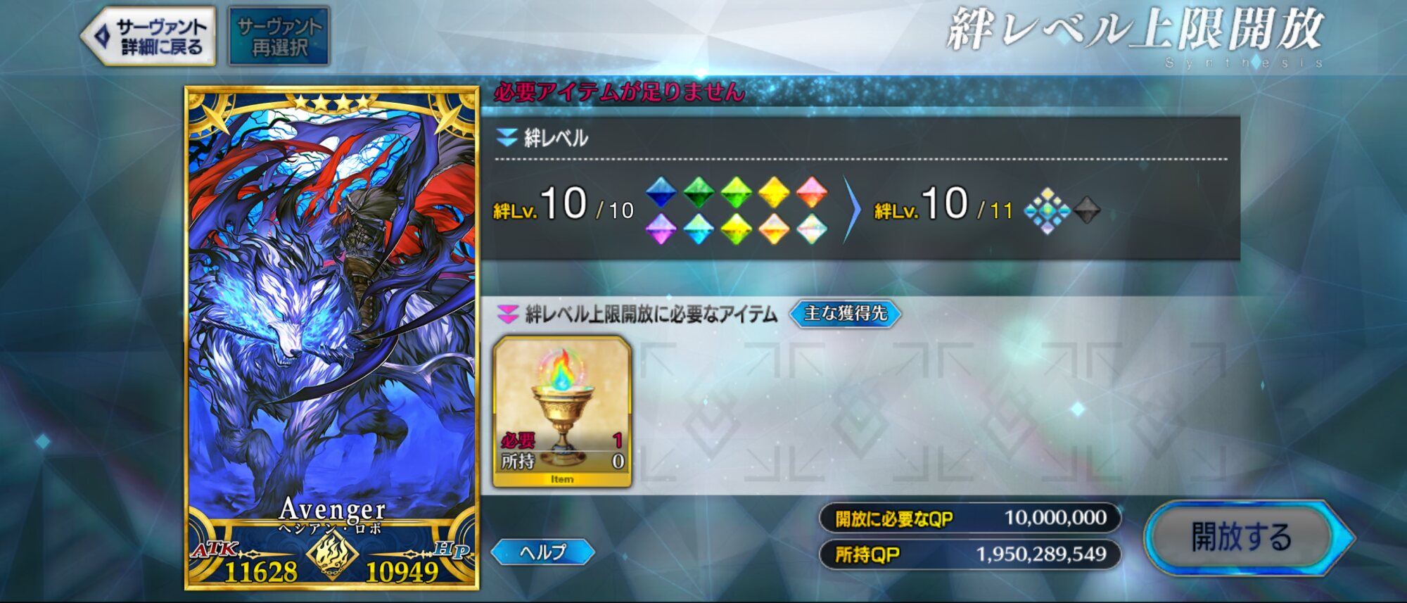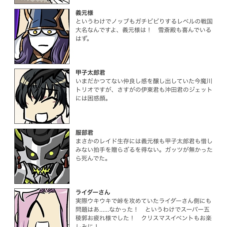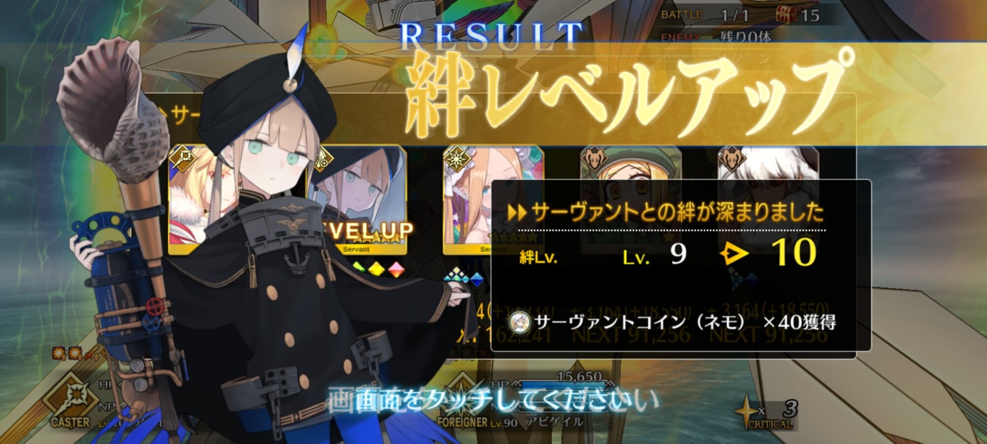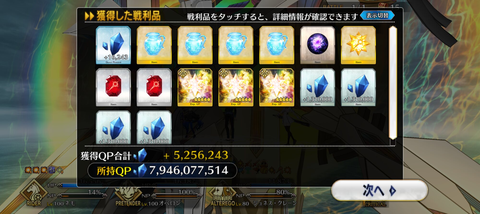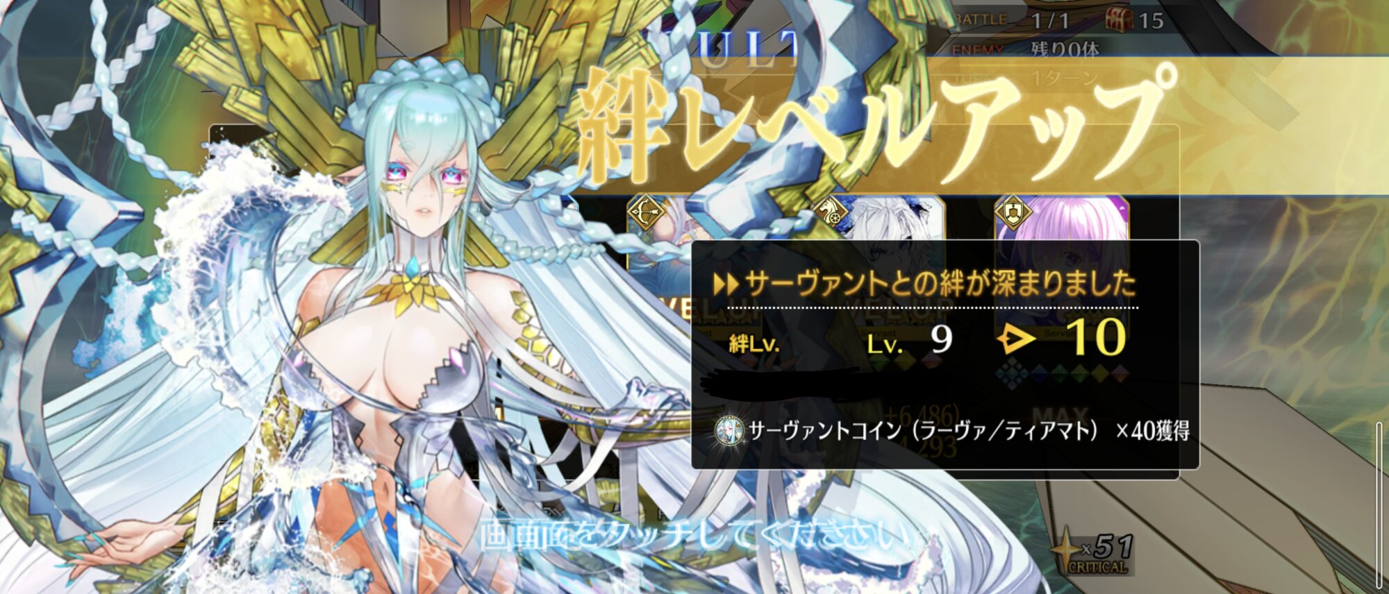 ライダースコア開けてる分もあるかもしれないが、次の戴冠戦がライダーですぐ来るし、問題ないな。サポに入れたテノチの絆がお茶と礼装効果でめっちゃあがっていく・・・。