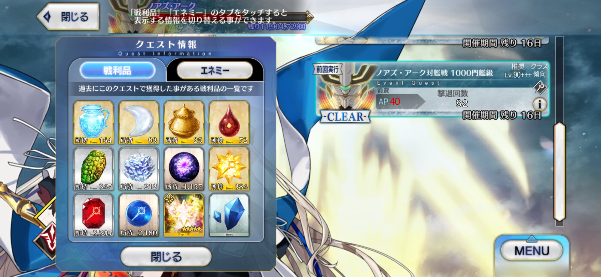 種火も素材もホクホクですそいえば今回合計で何隻撃沈したんだ?