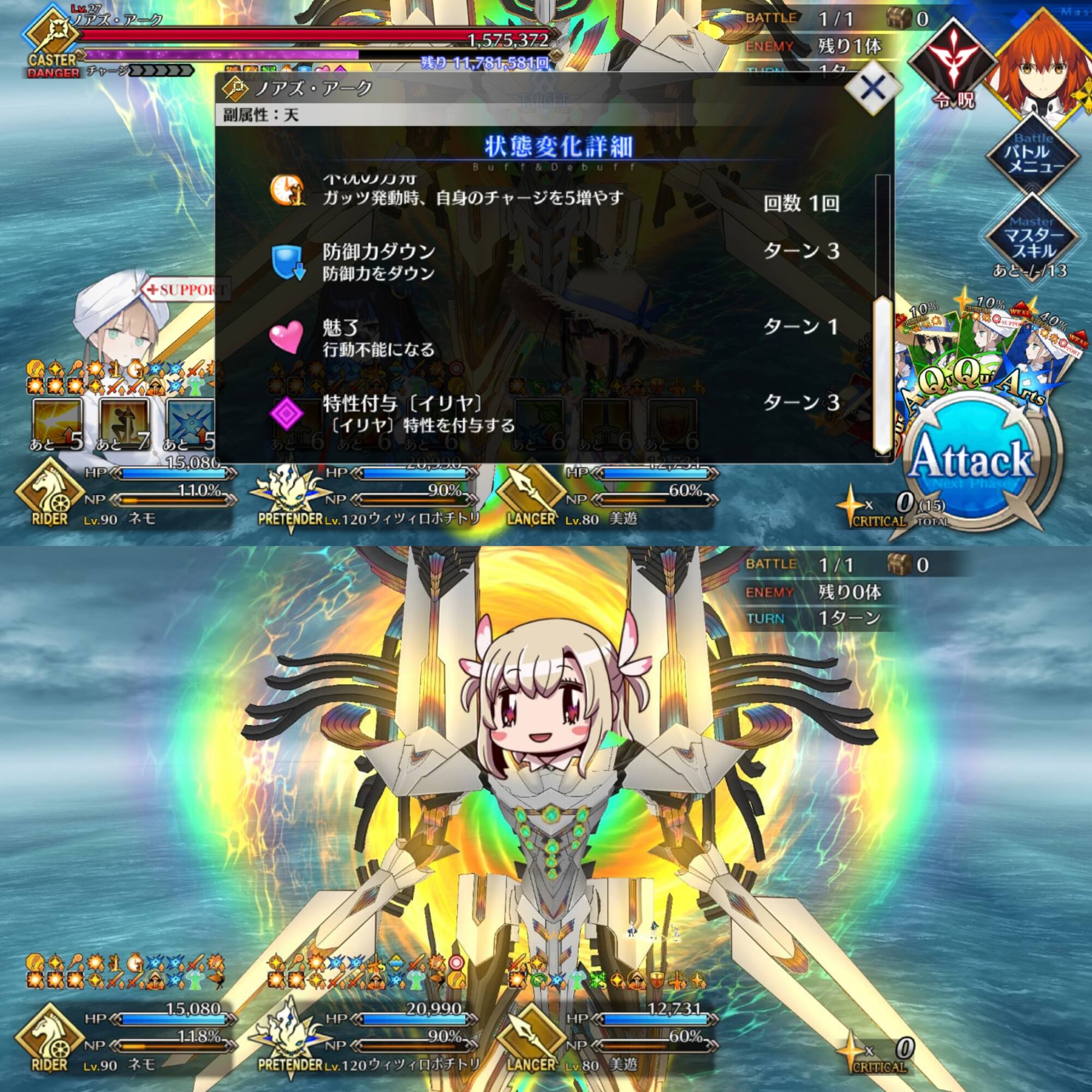 チャージ攻撃の強化解除もS1で対策出来る完璧な布陣(1回ミスって攻撃喰らったけど)