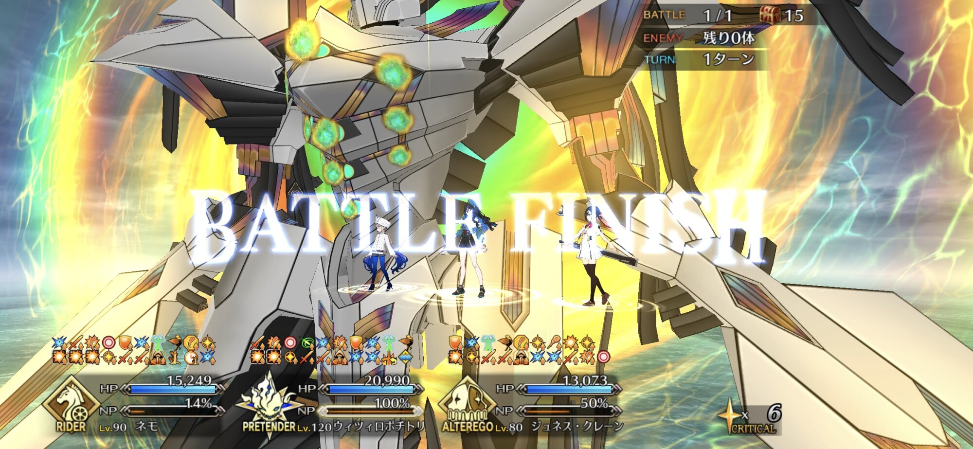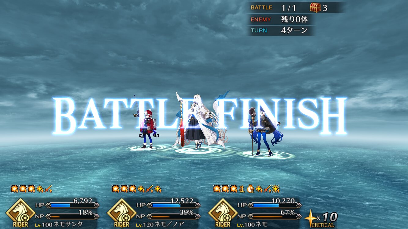 フレネモネモ宝具1イベ☆5無凸ヒレ子オダチェンキャストリア決戦s1でワンパンいけたネモはフレ頼りで周回してるんだがきをつけないとノア借りそうになる
