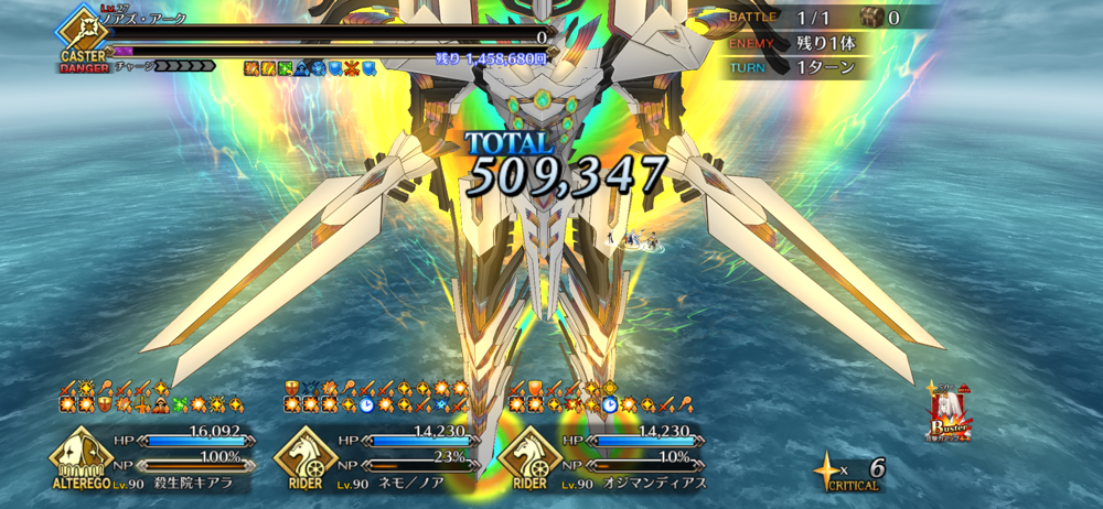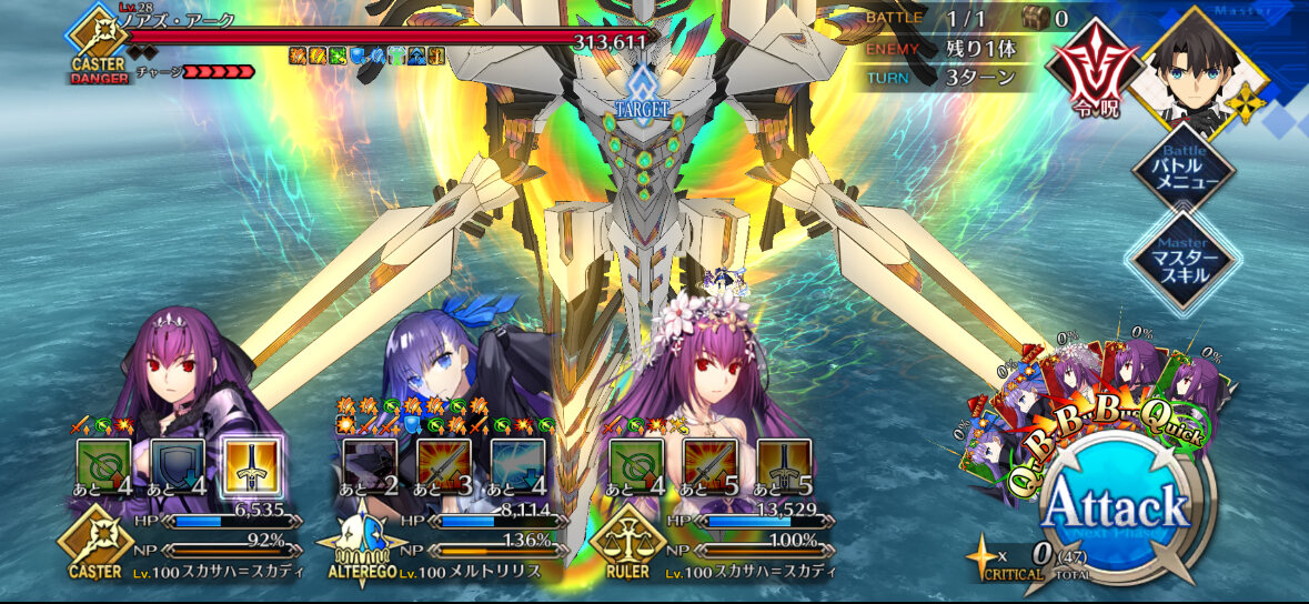 あとテノチは攻撃不利でも宝具打った後に宝具バフ全体に撒けるから微妙に倒しきれないならテノチのNP調整するのもオススメ>>74