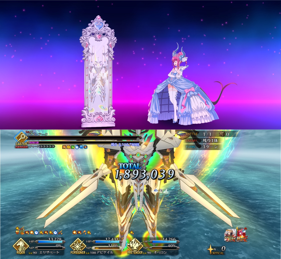 自分はイベ星5礼装が引けなかったんで、イベ星4礼装でこれプラスイベ特効入ってるキャスギルをオダチェンで出して更にバフって殴ってる。