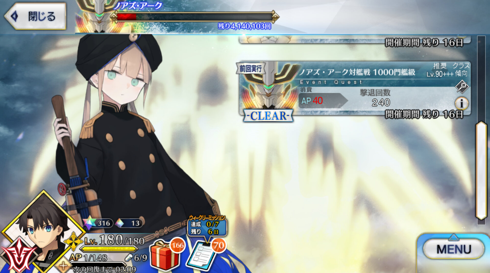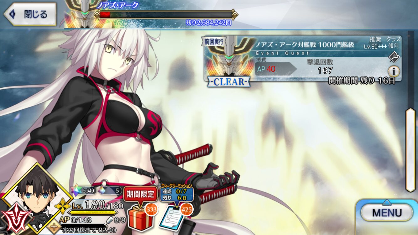 素直に単体サポートを借りて2連発がいいかちょっと背伸びして大統領120にして種火破産したから今回の報酬はとてもうれしい