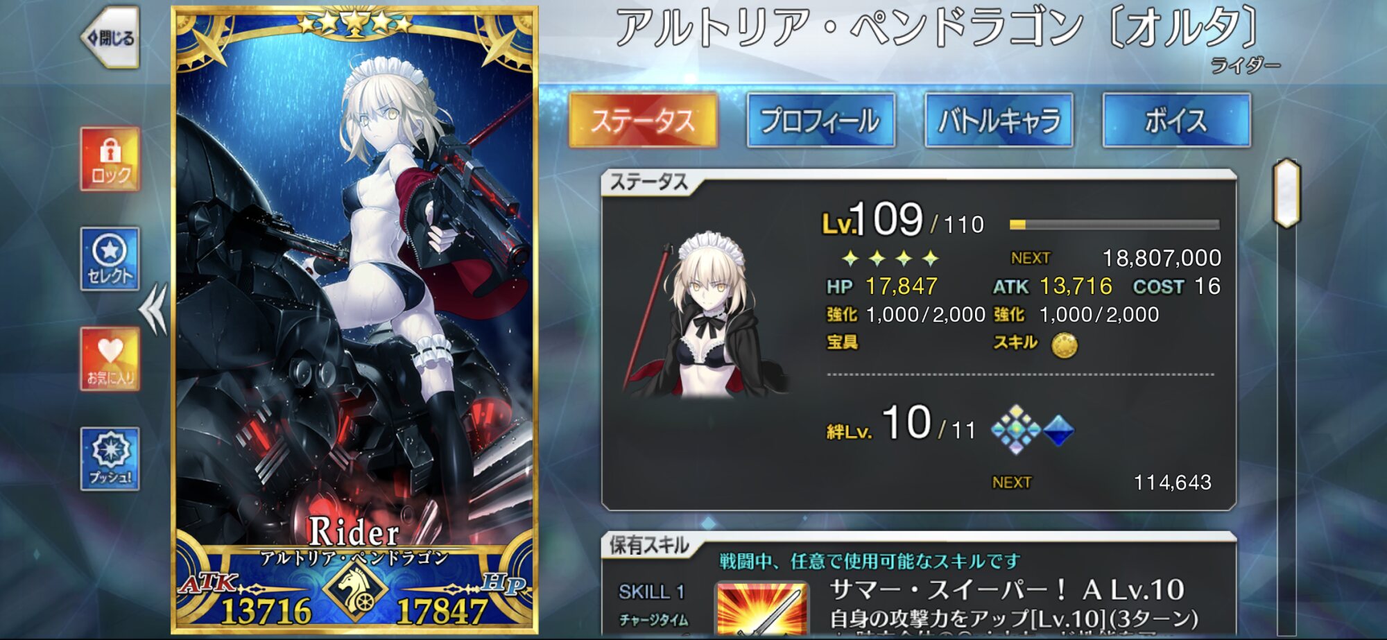 グランドじゃないけどうちのサメ悪役令嬢さんは今回のレイドで活躍してくれたこと、水着イベントでの活躍もあって気に入りましたのでレイド100にしましたよ〜冠位ライダースレ民