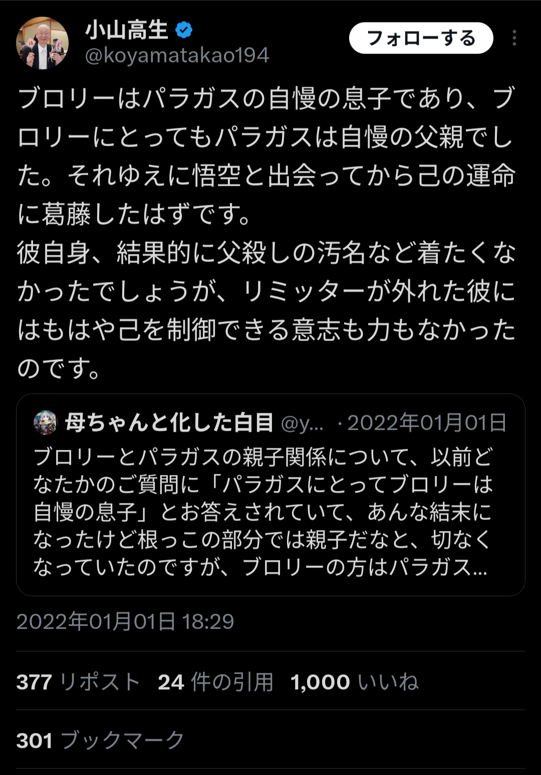 そして生まれたのが「悟空たちを血祭りにあげた後に正気に戻ったら親父ィを殺した自分に呆然とする説」だ>>908