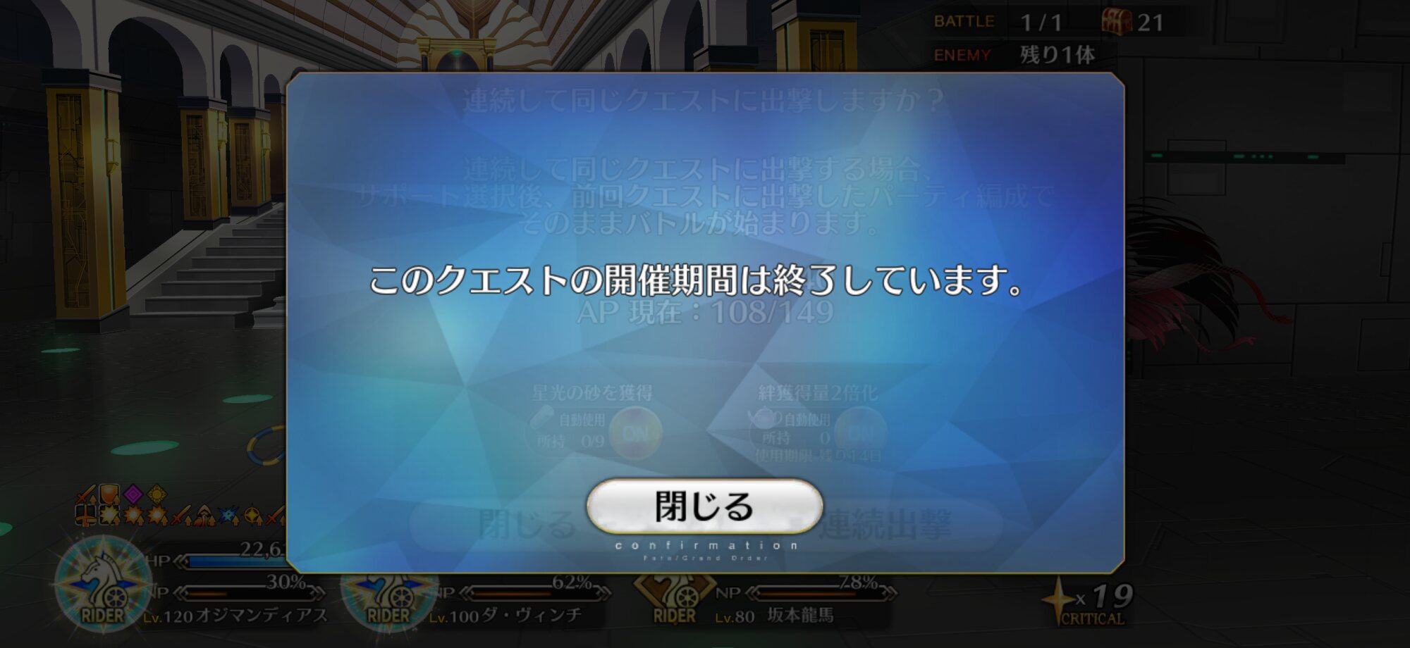 割とマジでパイセンと絡むようなシナリオ期待してたが流石に無理じゃったか・・・!ライダーでも剣盾強くなるし防御面はもうなさそう。クリティカル系統か?星を消費した数値でバフを得るみたいな。