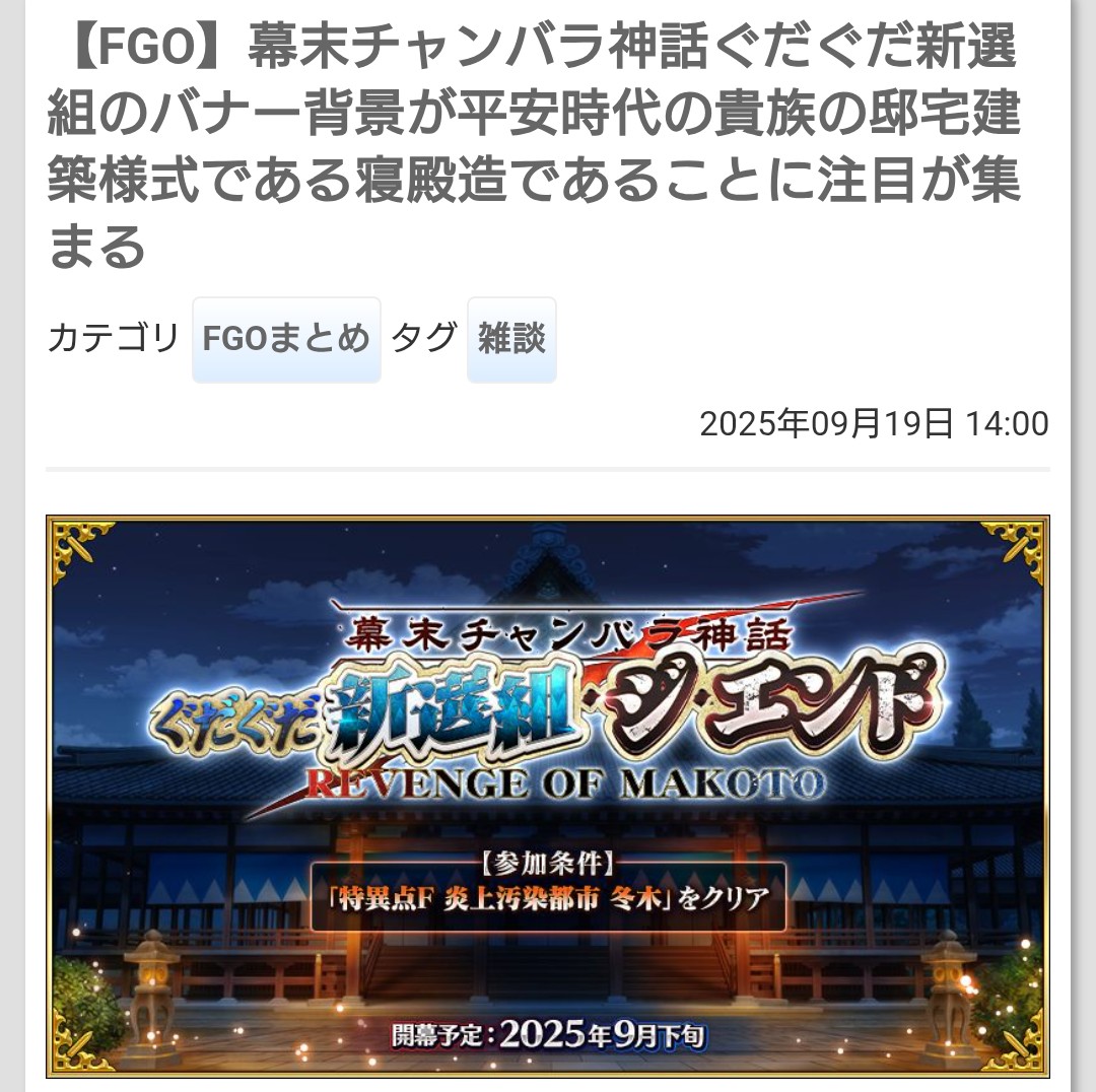 前スレ Fate/Grand Order 雑談スレッド 6105