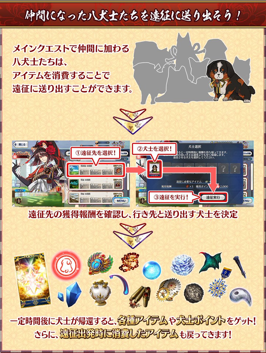 場所を選んで素材を「とってこーい!」するとちゃんと投げた素材持ってきたみたいでかわいいし、待機状態でタップすると反応あってかわいいし、シナリオも好きなイベントだった>>56