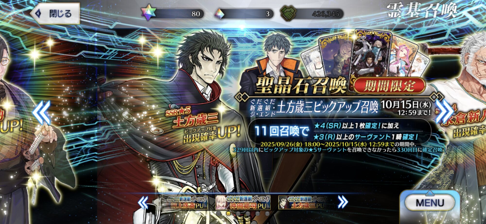 イメージ的には戊辰戦争時の、かけていって北まで行った副長だからな···>>968
