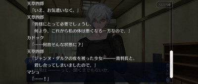 (なんでわかったんだ? いや、ともかく)助かった!ありがとうマシュ! ちょっと徐福ちゃんの部屋から着替え一式回収してきて!