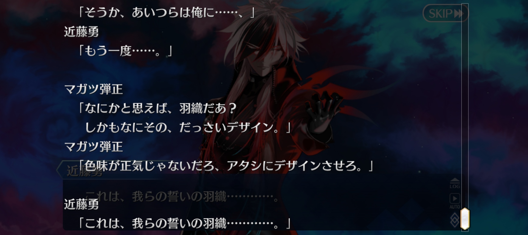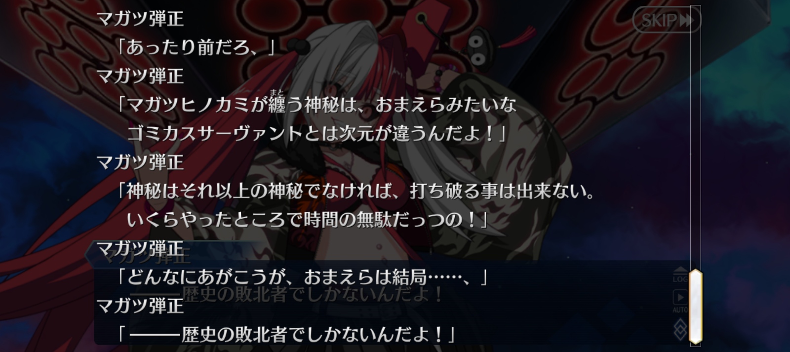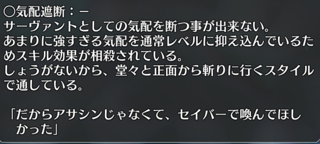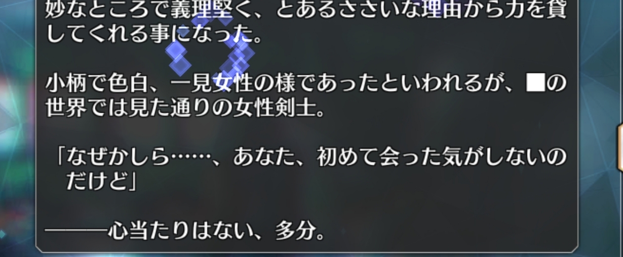 何故アサシンだったかってのもわからんままだし前の世界でもぐだをマスターにしてたみたいだけどぐだの為に振るう剣だって決めたのは今回の一件みたいだしマガツヒトノカミ、本当にサイコロで運次第の攻撃や妨害発動なんだな