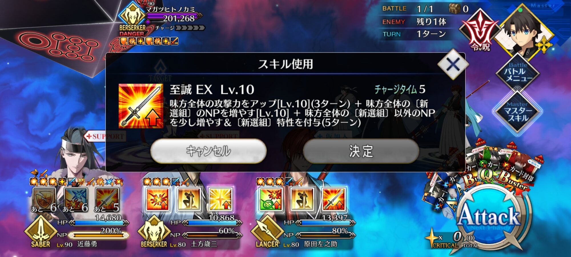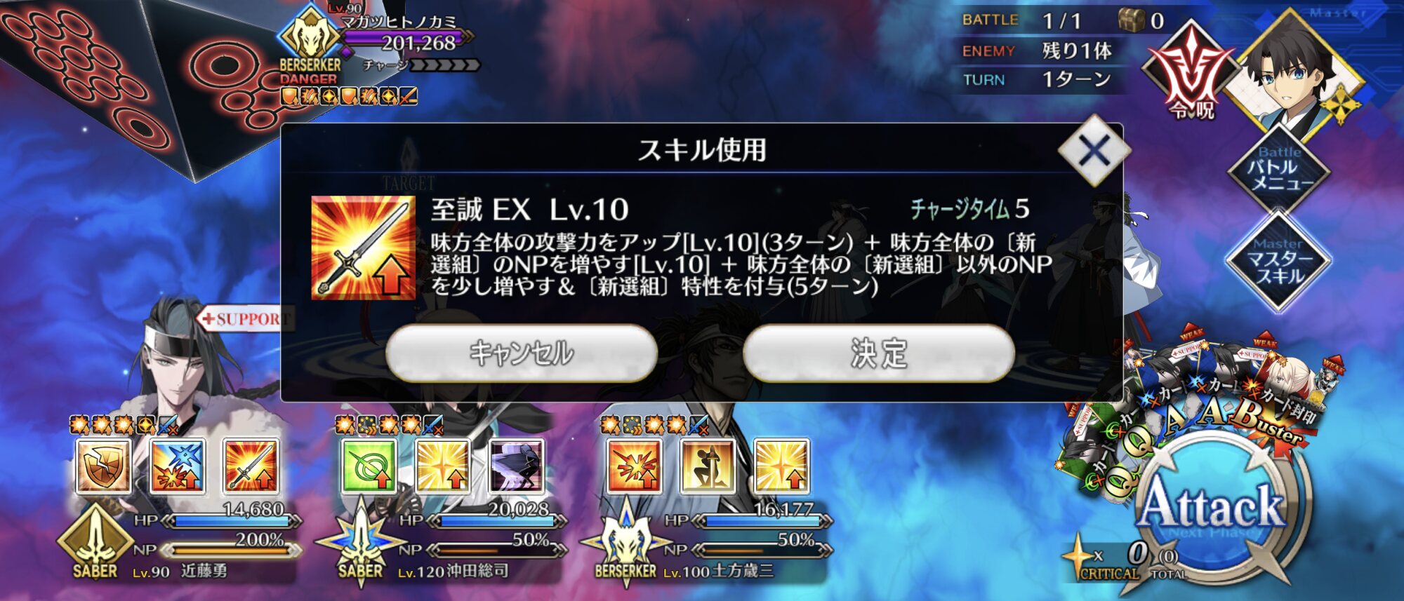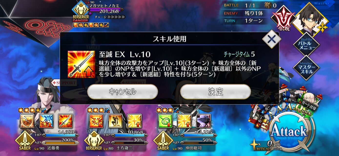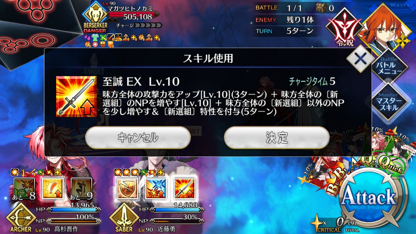 この熱を持ったまま引きに行きたいんですけどー!!宝具新選組専用バフです