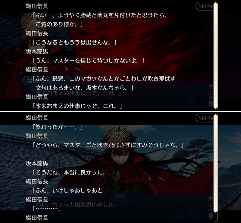 イベント立ち絵でも明らかに色違うからなノッブも沖田さんも他人相手なら割り切れる性格じゃなかったら、茶の湯バトルの時とか詰んでるからなあ