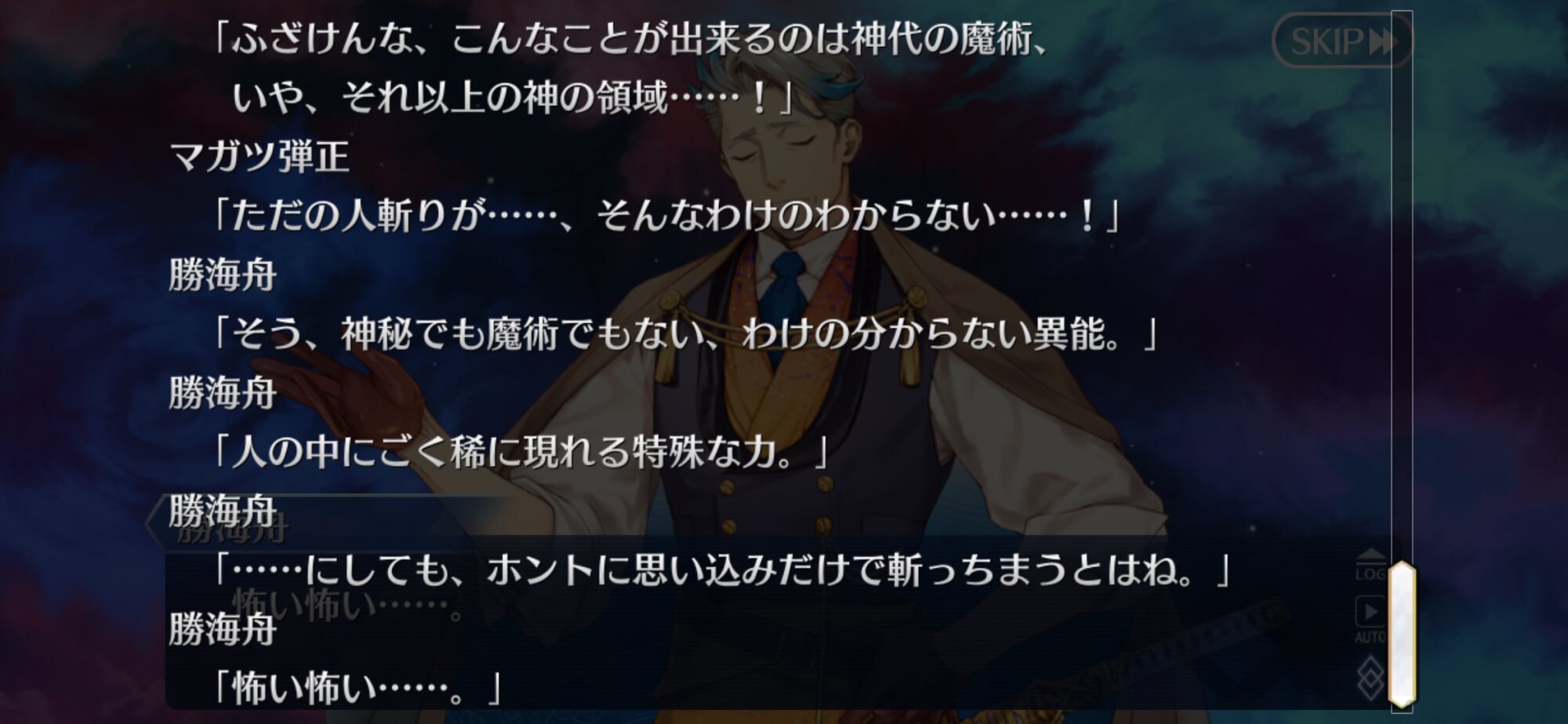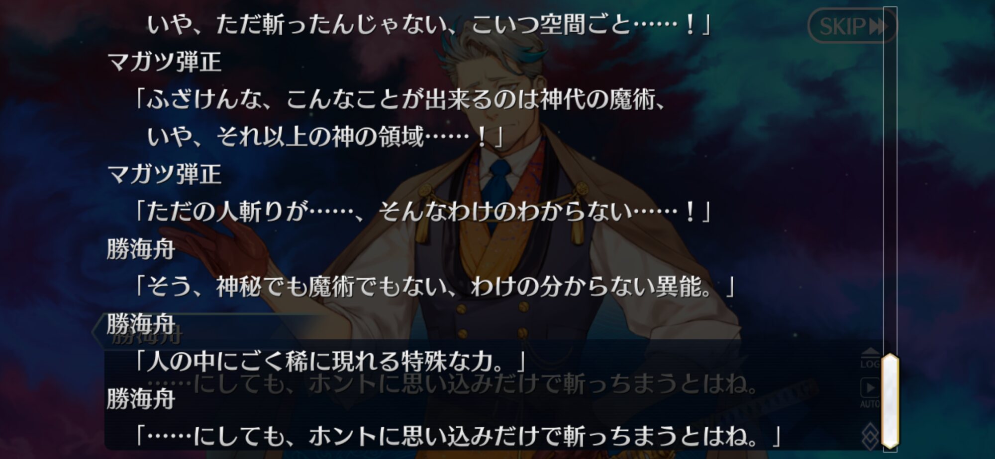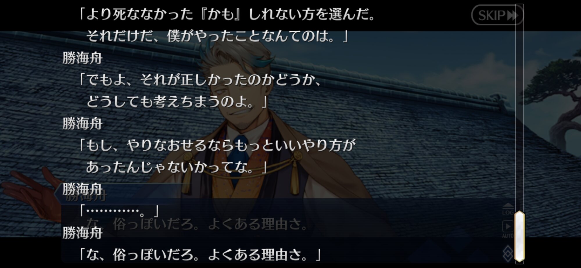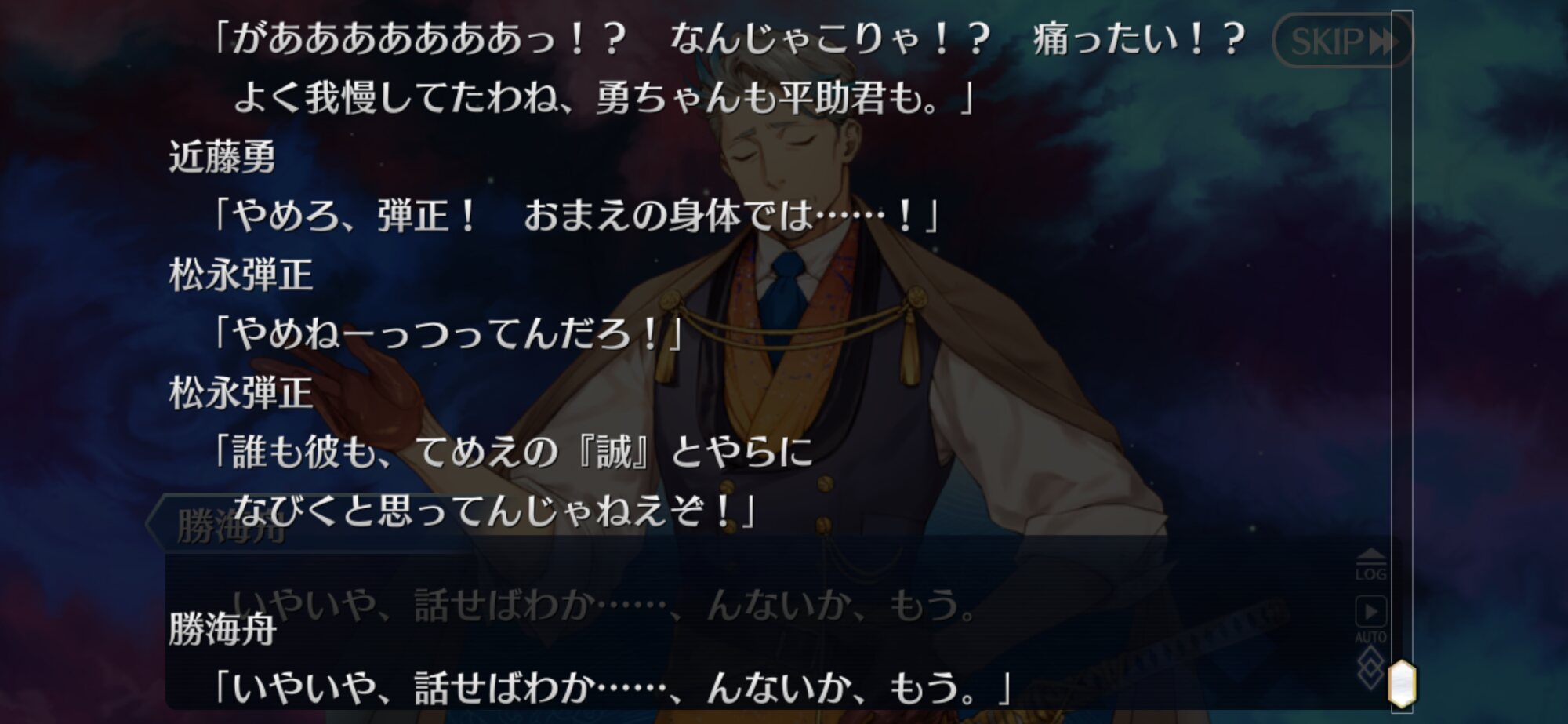 ここまで感動的な宝具になるとは思ってなかったからマジでそんなレア演出が混じったらどうしようと心配に……いや見たいのは見たいんだけど結局ここの河上さんは象山さん斬った時なんかあったの?