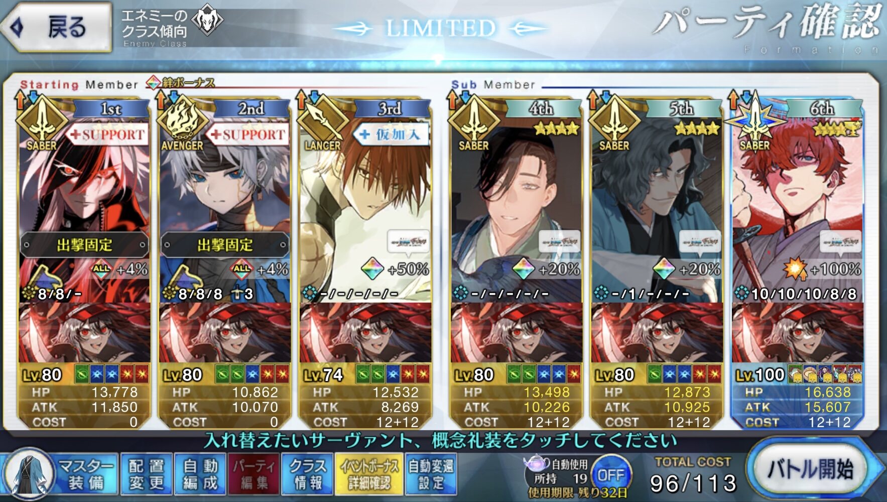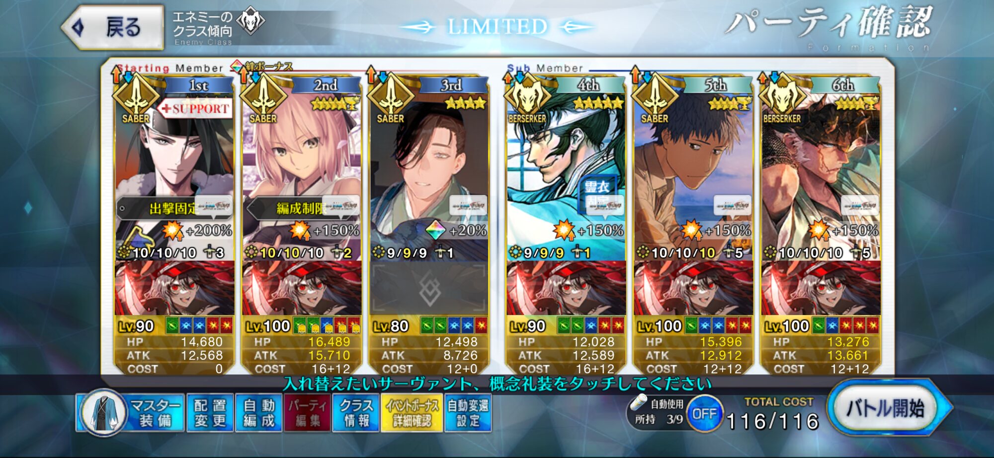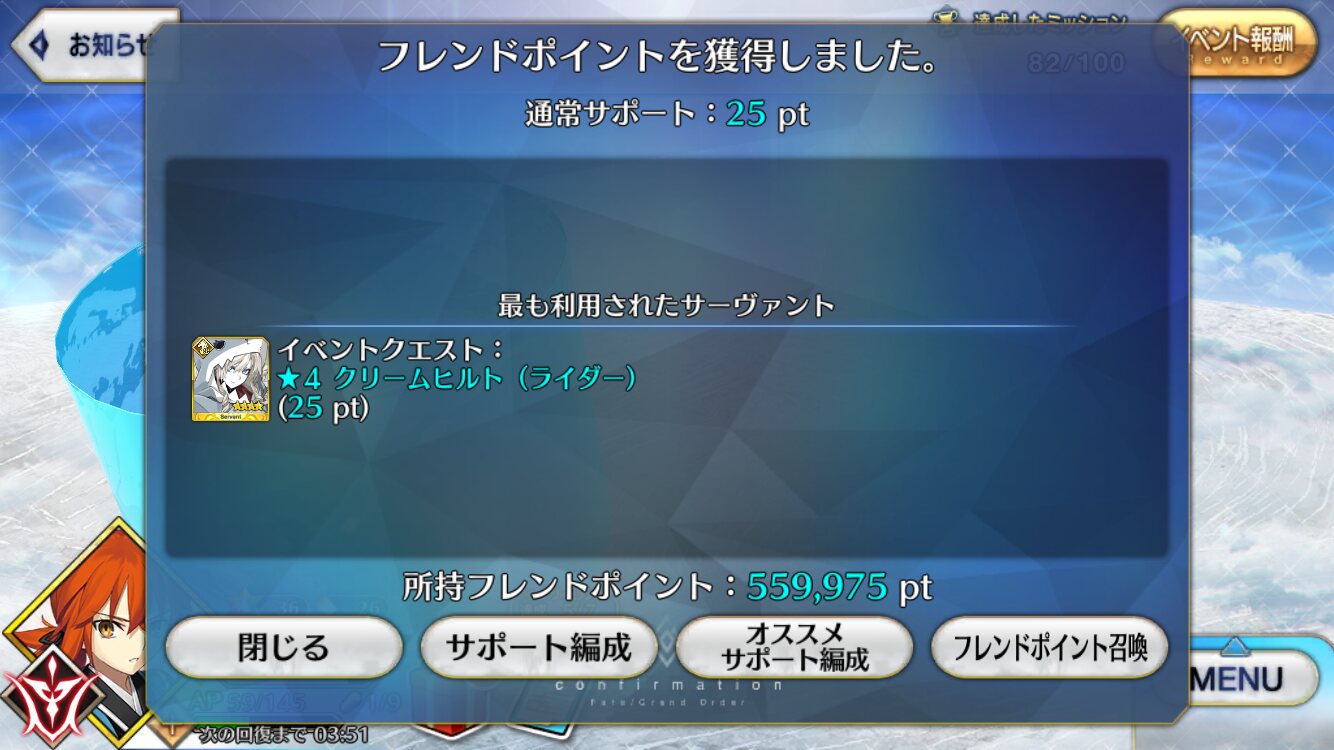 90++は火力的に工夫がいるけど、90+は本当に楽ね。70のキャスニキとコヤコヤで余裕があるぐらい。しかもミッションはここでほとんどこなせるし。青王『また味方を呼び出す宝具ですか・・・なんで私の宝具はこう・・・ナイツオブラウンドな感じにならないんでしょうね?ランスロット意見はありますか?』